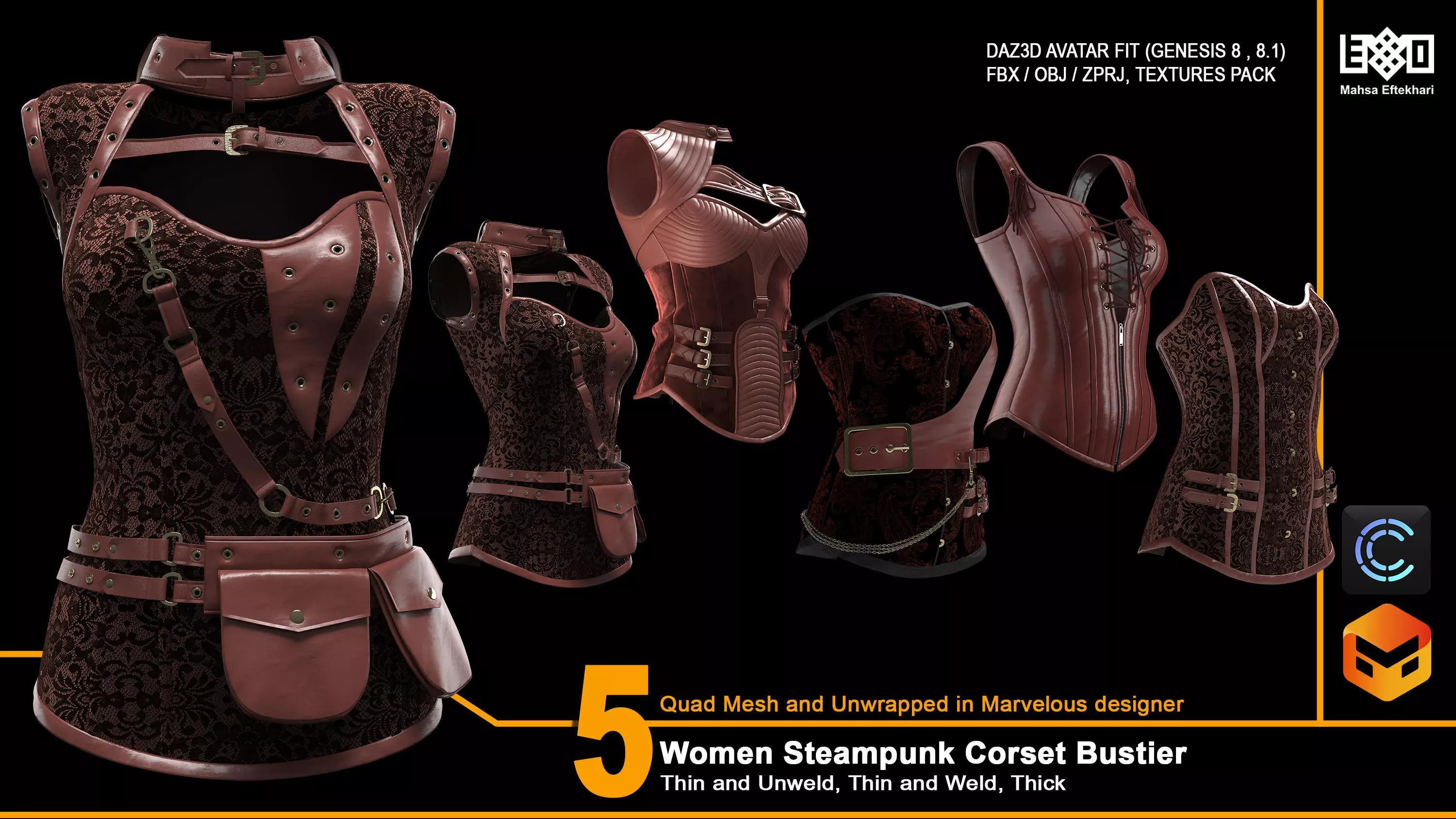 Women Steampunk Corset Bustier - ZPRJ-FBX-OBJ Files 3D model