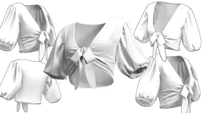 Women White Front Tie Top 3D Model FBX OBJ ZPRJ Blender Low-poly 3D model