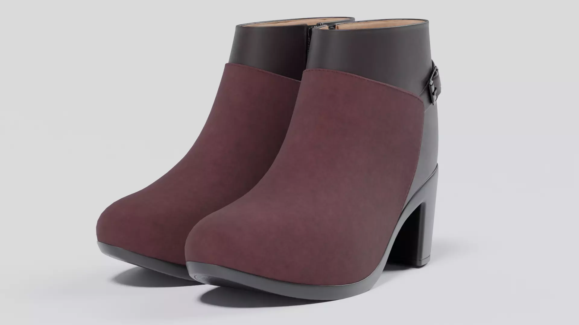 DescriptionRealistic and high-quality 3D model of women’s heeled ankle boots with a rich maroon suede texture and leather collar. Perfect for fashion visualizations, e-commerce mockups, and AR/VR footwear experiences.