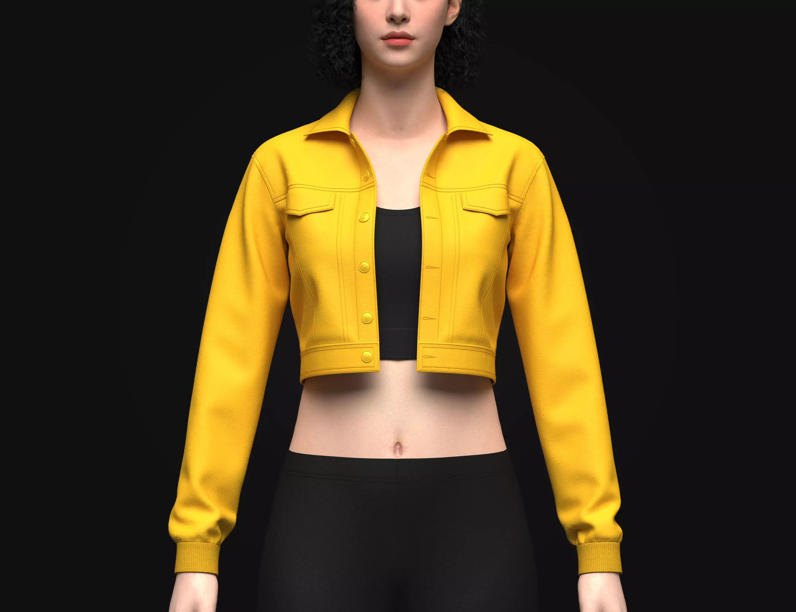 Womens Cropped Denim Jacket with Crop Top 3d Model 3D model