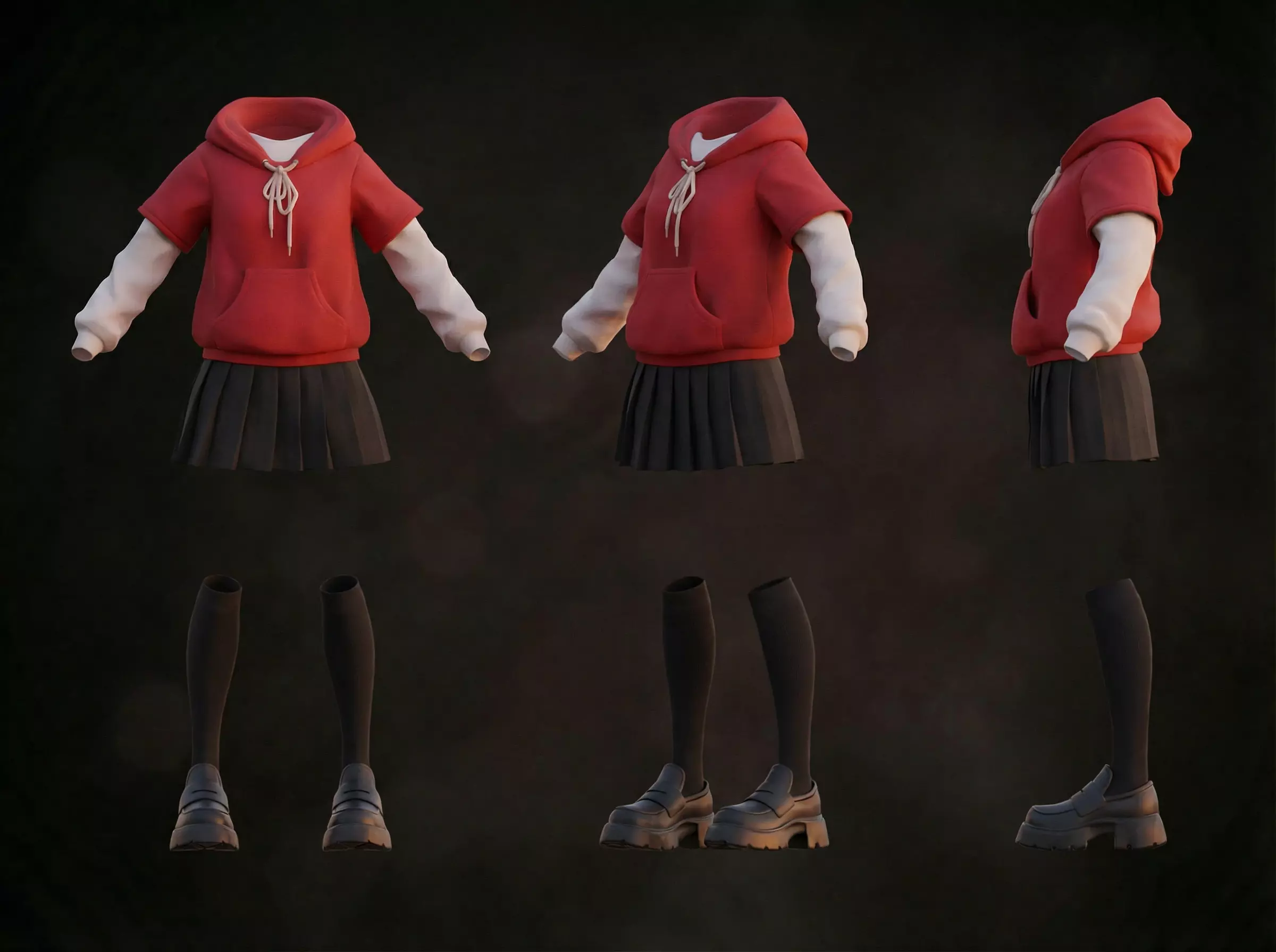 Bring your stylized characters to life with this high-quality High School Girl Hoodie. This asset is specifically designed for indie games and animations, featuring a professional 'Fortnite-style' aesthetic.