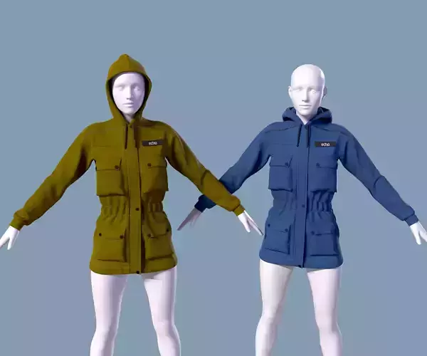 Hello! This is a 3d model of a Women's jacket with hood.