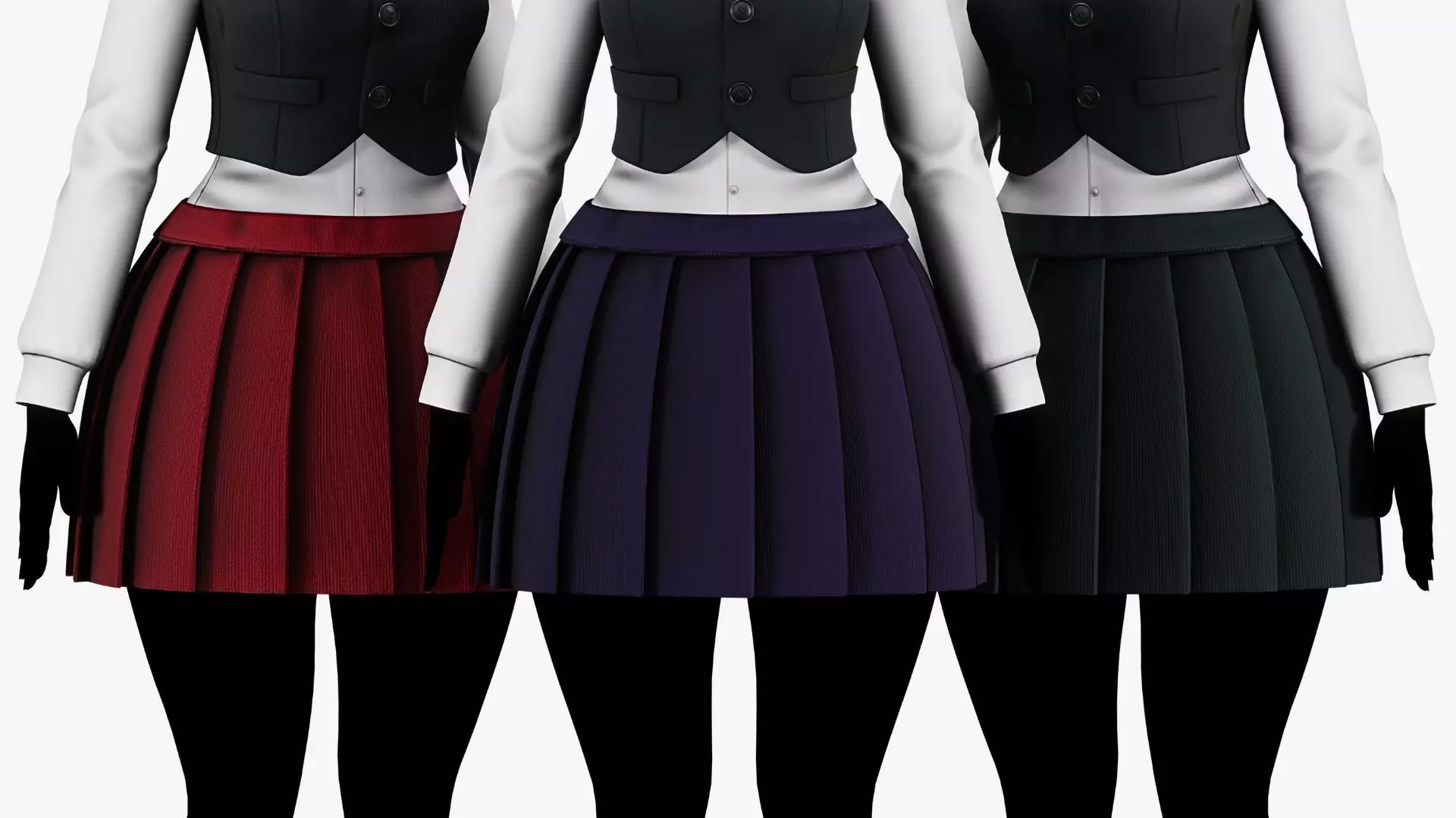 Womens Pleated Skirt Pack - Avatar Clothing Low-poly 3D model