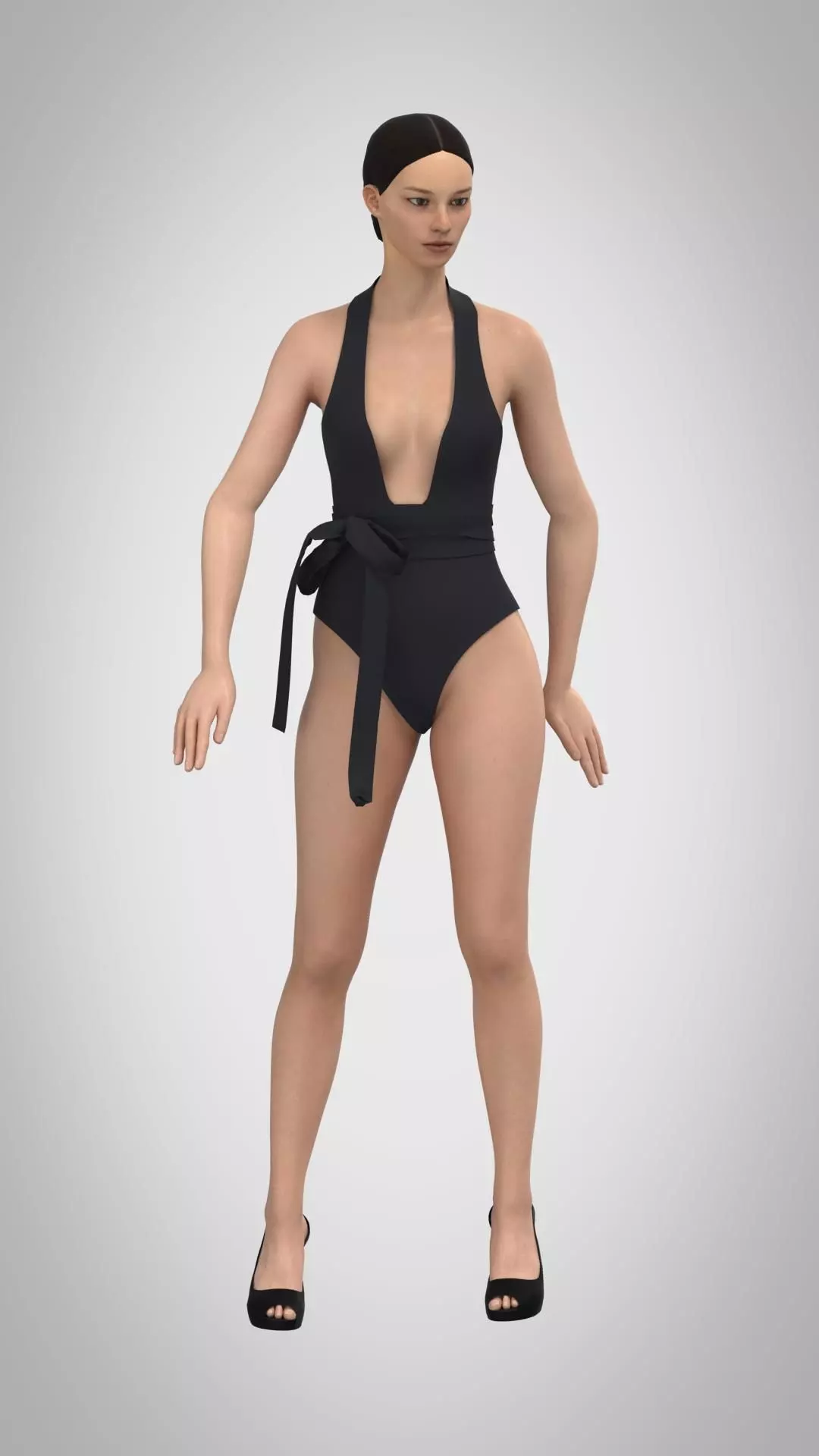 women's piece swimsuit with long strings, deep neckline. The package contains the following file formats:
