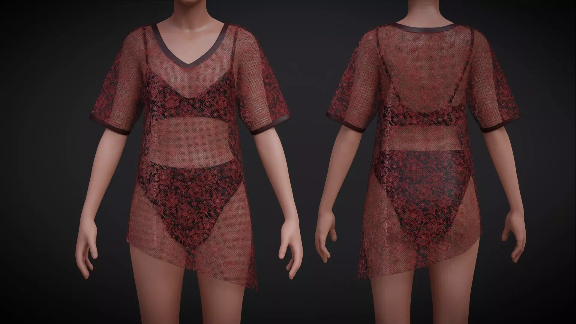 women lingerie - set and crotchet shirt swimsuit outfit Low-poly 3D model