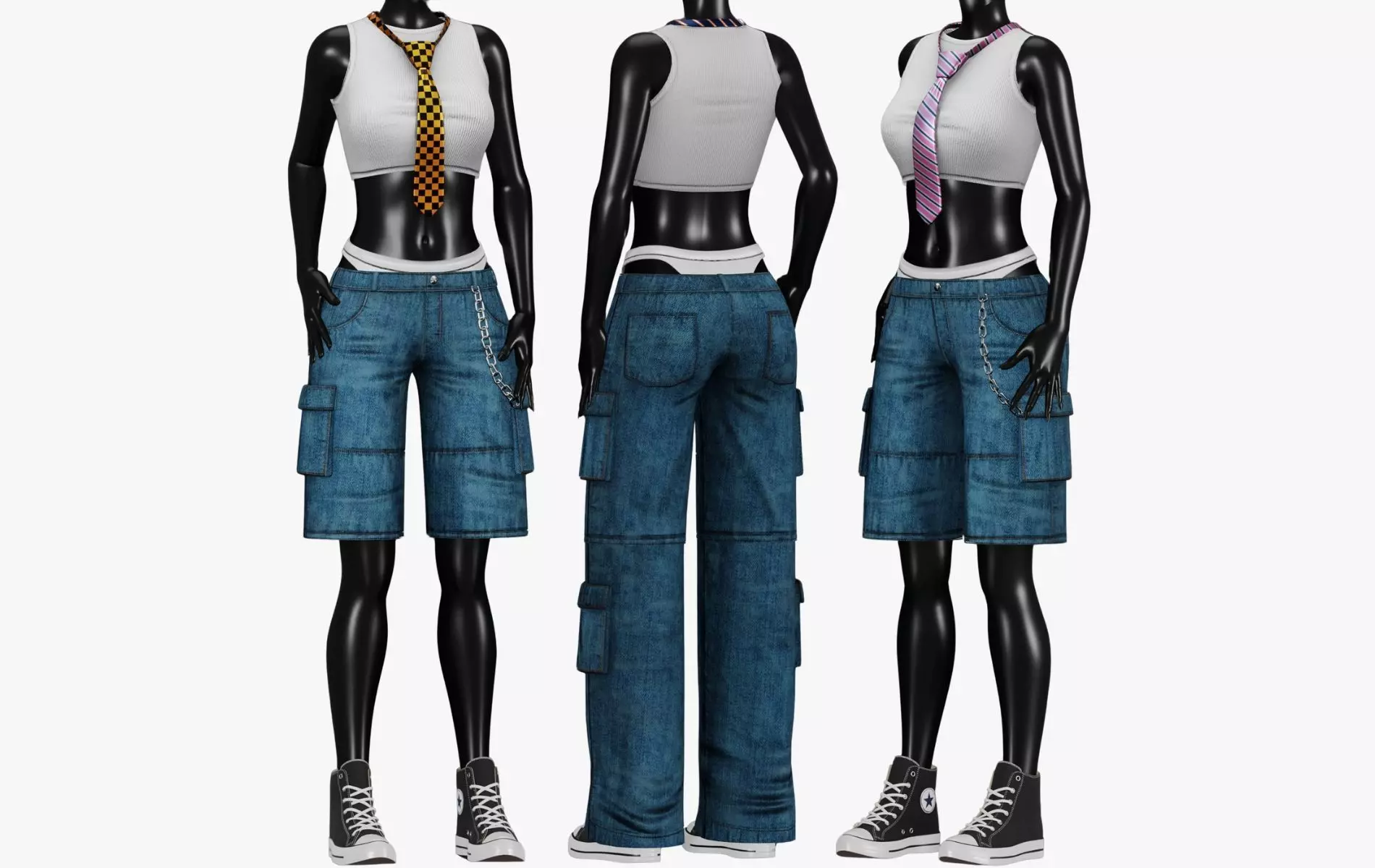 • Model Parts: 6 Pants/Shorts, Pantie, Tanktop, Chain, Tie (Included Low Poly)