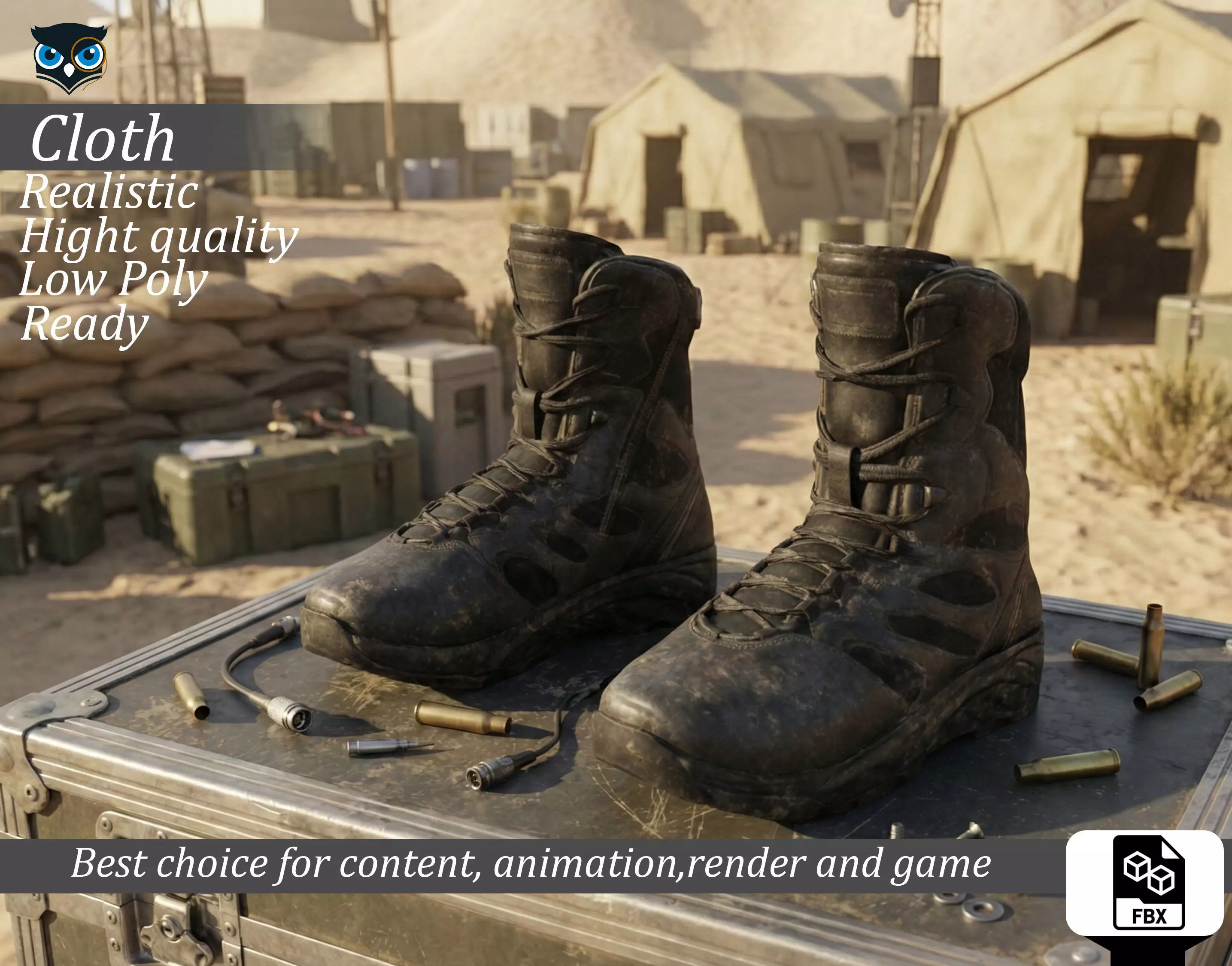 Equip your characters for the field with these photorealistic Black Tactical Boots. Designed to represent modern high-cut combat footwear used by military infantry, SWAT teams, and private security forces, these boots feature a heavy-duty construction of leather and ballistic nylon.
