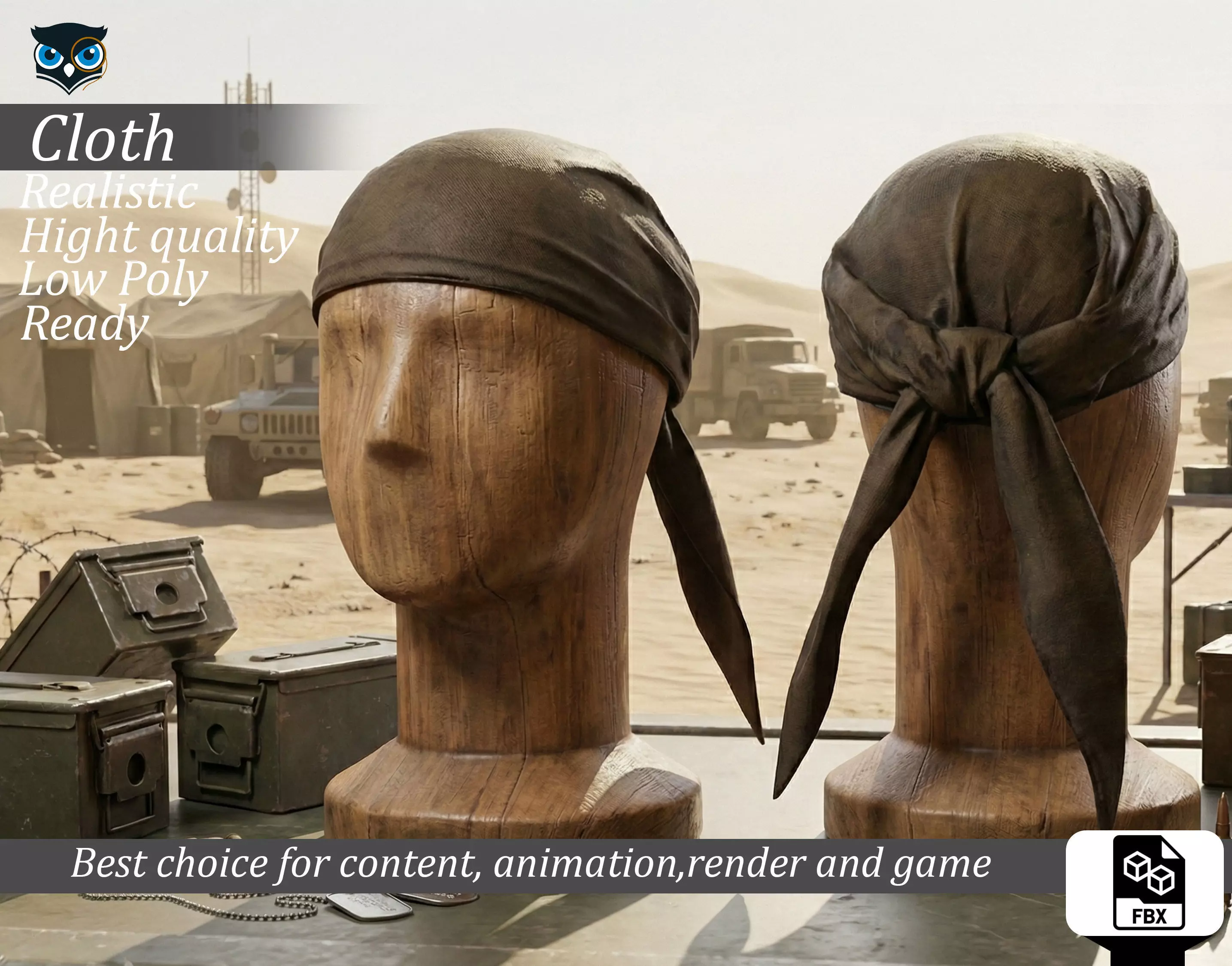 Add character and grit to your models with this photorealistic Brown Worn Bandana. Perfect for a wide range of genres, this headwear fits naturally on pirates, bikers, medieval rogues, or post-apocalyptic survivors.