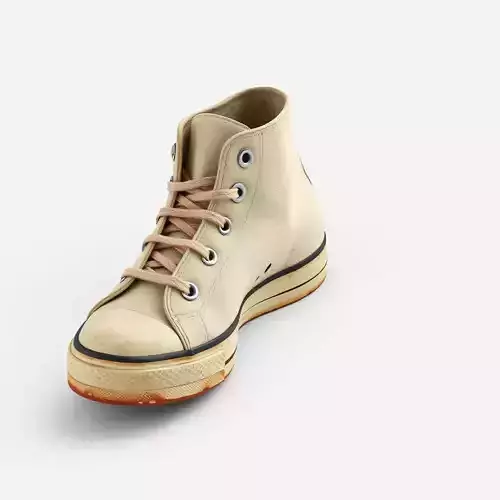 This highly detailed 3D model represents a classic high-top canvas sneaker, meticulously crafted with realistic wear and dirt textures. The model accurately captures the iconic design, featuring detailed laces, metal eyelets, and a subtly aged sole and toe cap, giving it an authentic, lived-in appearance. This versatile asset is perfect for a wide range of applications, including enriching game environments as a character accessory or prop, enhancing realistic architectural visualizations, or populating virtual showrooms in augmented and virtual reality experiences. It is also an excellent resource for digital artists looking to add authenticity to their scenes or for use in product rendering. The model is optimized for both real-time applications and high-quality static renders, ensuring excellent performance and visual fidelity. It boasts clean, optimized topology, is fully UV unwrapped for easy texture application, and includes PBR (Physically Based Rendering) textures that vividly convey material properties like canvas, rubber, and metal, complete with realistic dirt and grunge. Supported file formats include GLB, OBJ, FBX, USD, and DAE, making it compatible with most 3D software and game engines. Additional formats like ABC, STL, and PLY can also be provided upon request, ensuring broad utility for various production pipelines.