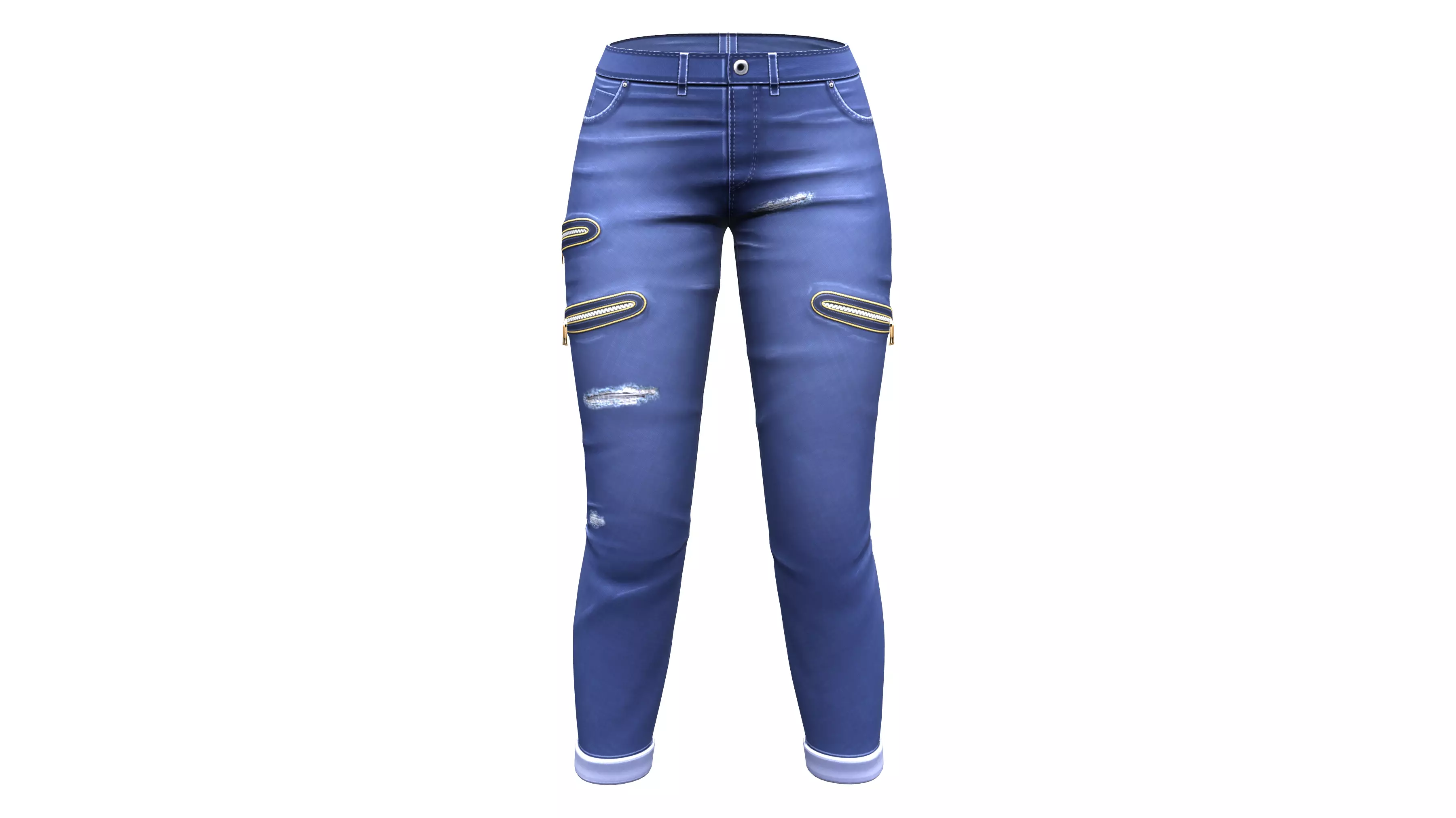 Zip Pockets Rolled Legs Denim Pants Low-poly 3D model