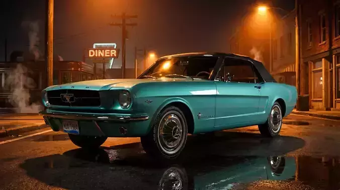Relive the golden age of American muscle with this stunning, high-fidelity 3D model of a First Generation Ford Mustang Convertible (circa 1965). Rendered in a vibrant teal/light blue finish with a black soft top, this model perfectly captures the essence of classic 60s cruising.