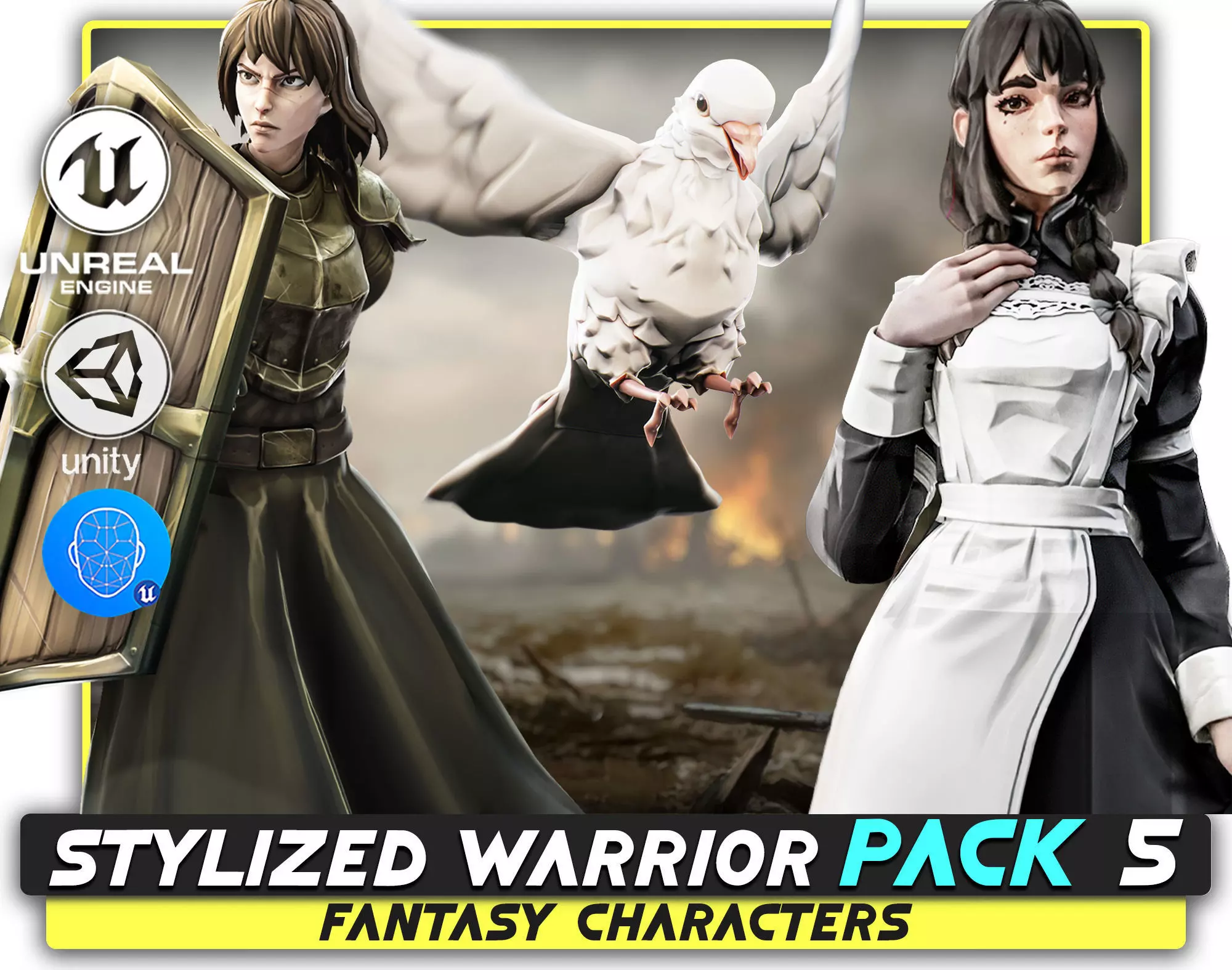 Stylized Warrior Pack 5 – Maid Mary, White Pigeon & Guardian Avelyn – RPG Fantasy Characters Bundle