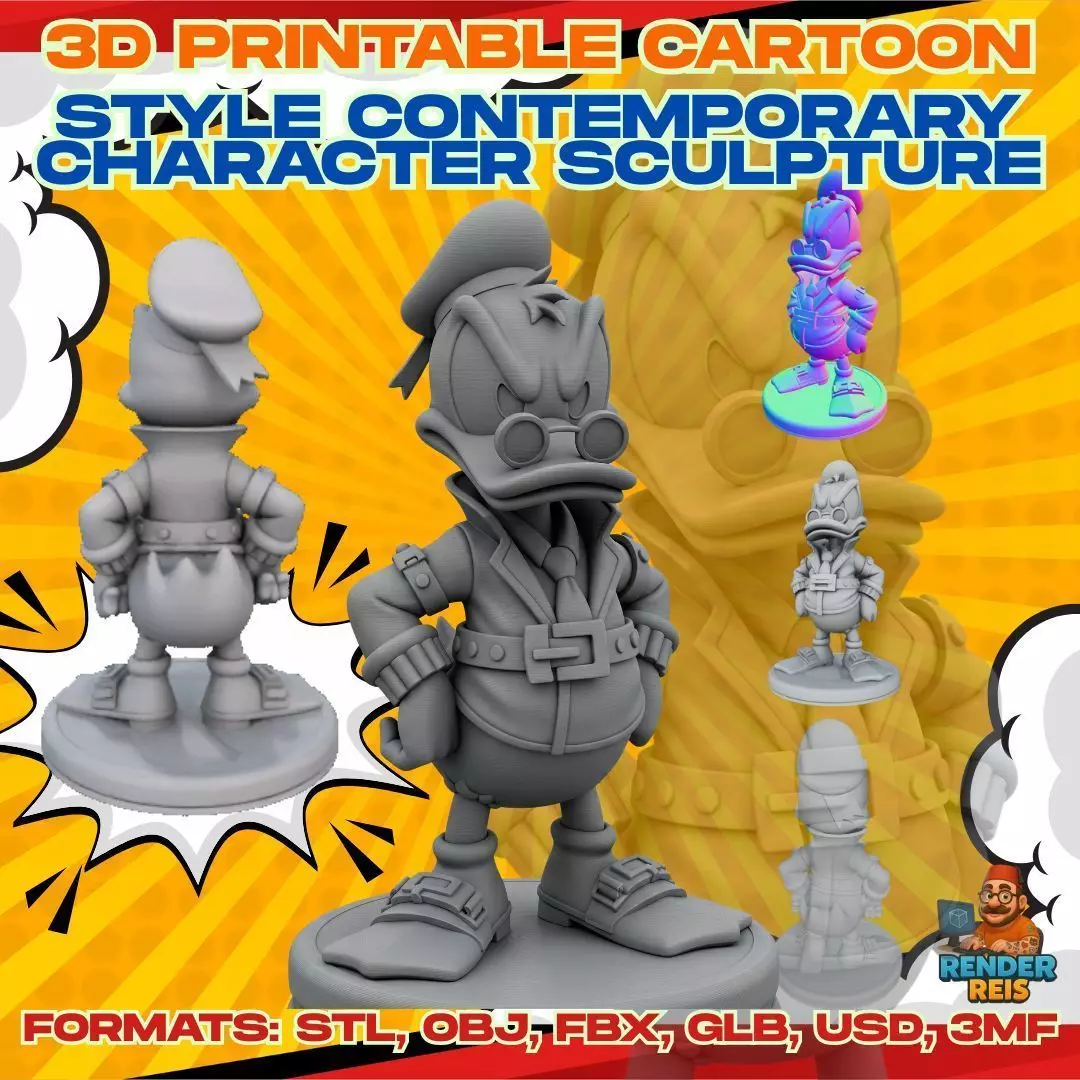 This original model blends the classic Donald Duck character with a modern and mysterious flair, merging it with steampunk aesthetics. The figure’s hands-on-hips stance, feet shoulder-width apart, and slightly forward-leaning posture give it a grumpy yet determined attitude. With round oversized glasses, a thick-collared coat, a wide buckled belt, and large buckled shoes, the model offers rich and engaging detail.The model’s overall rounded geometry ensures stability during 3D printing, while using matte gray plastic filament enhances the depth and shadows of the details. FDM printers with the right settings can achieve great results, while resin-based SLA/DLP printers capture the fine details perfectly. The wide, thick base ensures balance during printing and display, making it ideal for collectors and decorators.A perfect collectible and decorative figure for steampunk-themed collections, desktops, or display cases. Compatible with color 3D printers and single-color 3D printers.