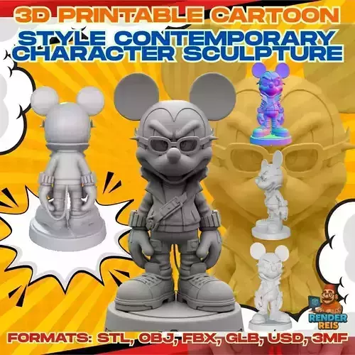 This unique model reimagines the classic Mickey Mouse character with a bold urban aesthetic, creating a confident, stylish, and slightly rebellious look. The figure stands with feet shoulder-width apart, slightly leaning forward, and arms relaxed by the sides. The subtle frown and chic, angular glasses give it an intellectual and self-assured vibe. The thick-collared zip-up jacket, loose-fit pants, chunky sneakers, and crossbody strap bag detail complete the modern, youthful stance.The model's rounded and smooth geometry, detailed clothing stitches, and glasses frames deliver impressive results in 3D printing. FDM printers can achieve great outcomes with careful settings, while resin-based SLA/DLP printers capture the finer details perfectly. The wide, thick base ensures both printing stability and a balanced display structure.Perfect for modern urban decor, themed collections, or stylish room accents. Compatible with color and single-color 3D printers, and provides an excellent base for post-print painting.