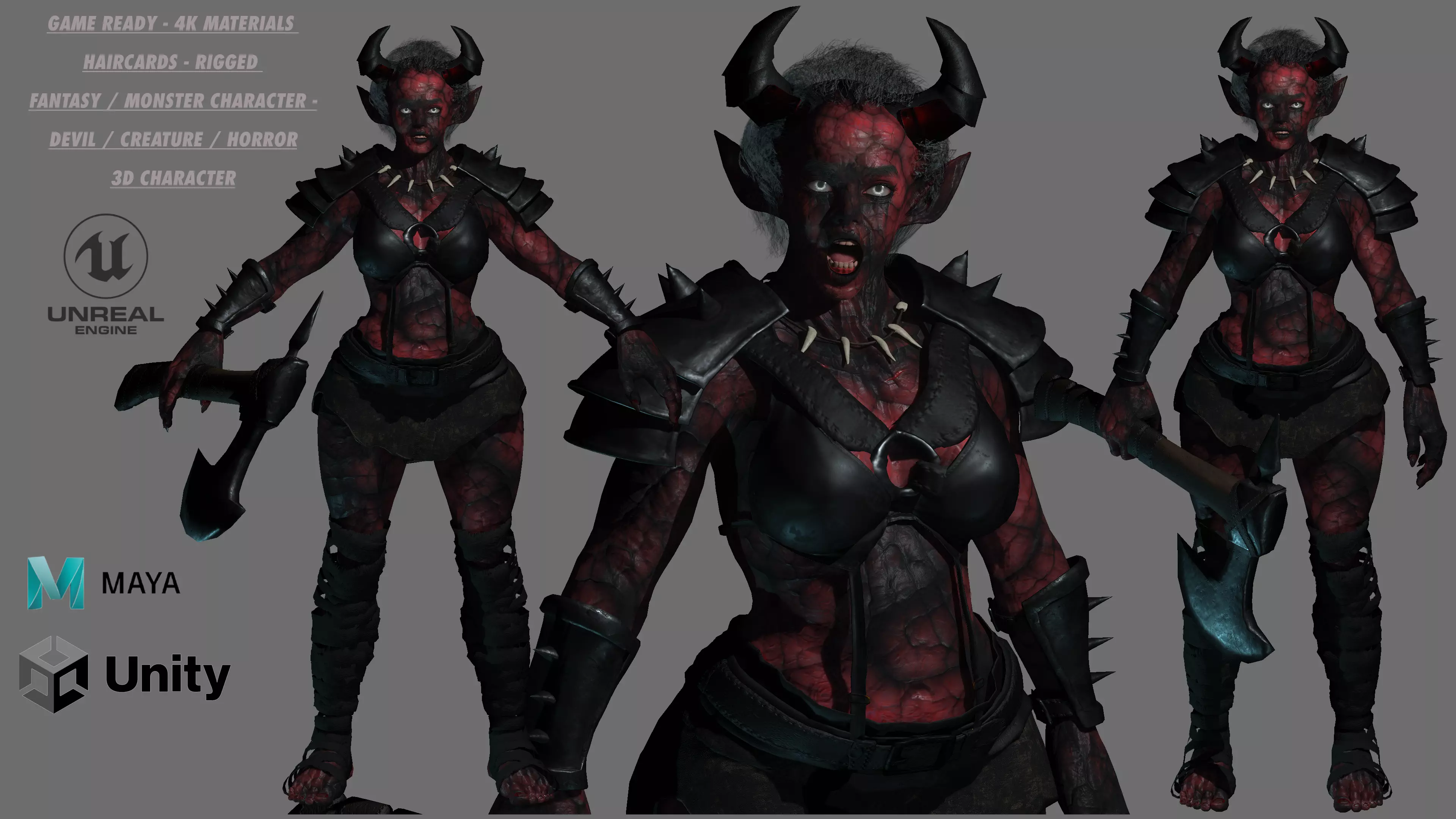 High-quality AAA game-ready 3D Female Character ( Monster/ Devil / Creature / Fantasy Character ) can be used for Games, Animation Movie, Augmented Reality, Metaverse etc