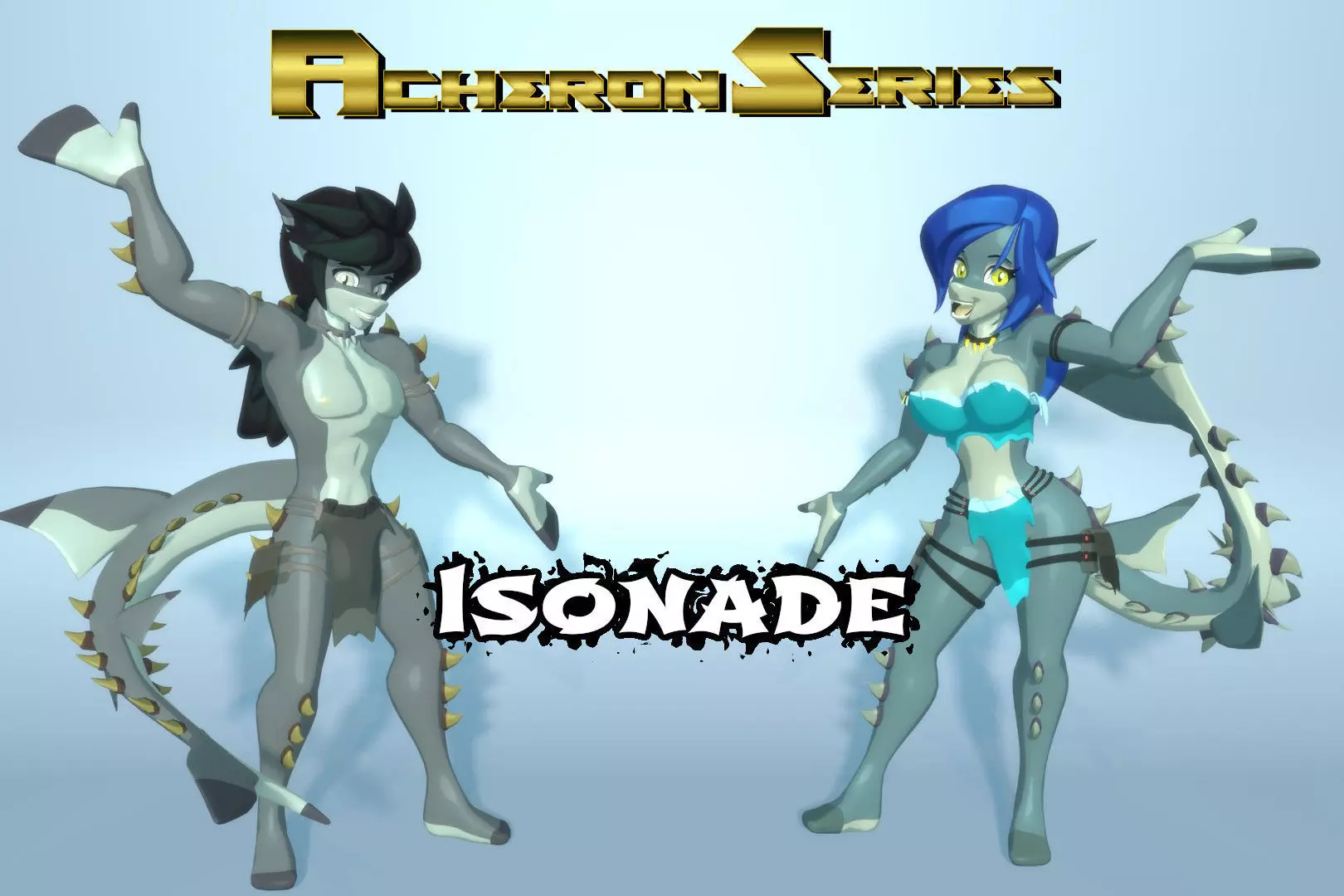 This is the totally nude, fully rigged, base mesh model for Acheron style Isonade characters. Extra bones are provided to control the naughty bits, if needed. An exchangable texture with 16 color palettes is included. You can easily add your own, or mix and match to create a unique character for your unique project. Male and female can each use all colors.