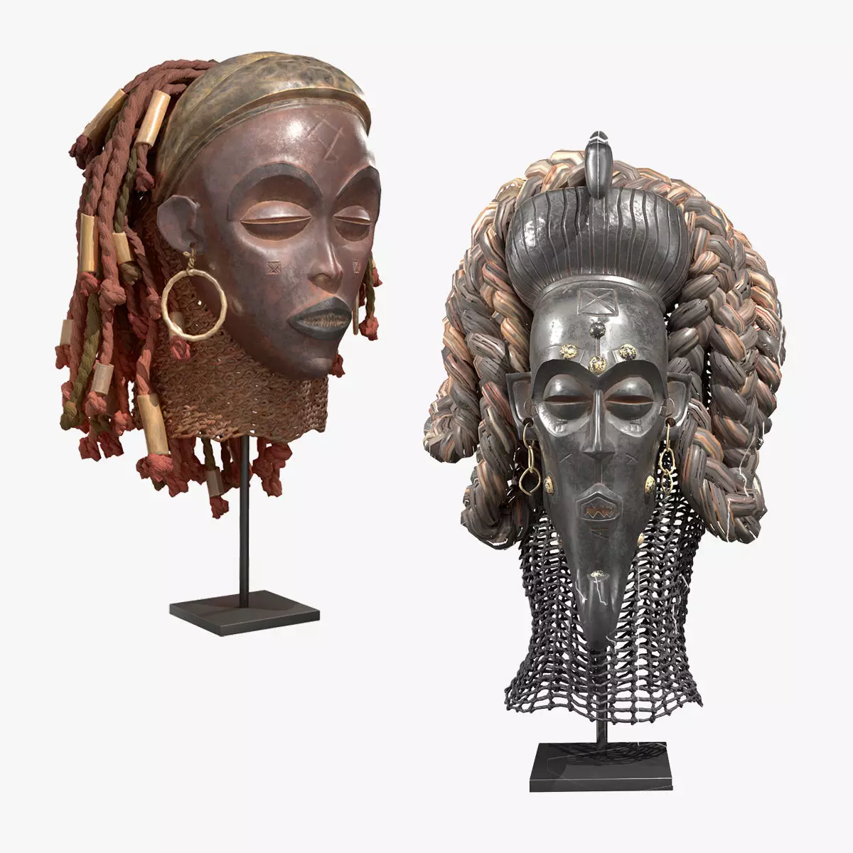 African masks from the Chokwe people of Angola and DR Congo. It is used in tribal dances during harvest festivals, in processions to honour distinguished visitors and at the funerals of important figures. Modeled for subdivision - only quads and tris polygons. This product includes 3ds Max versions with V-Ray No third-party renderer