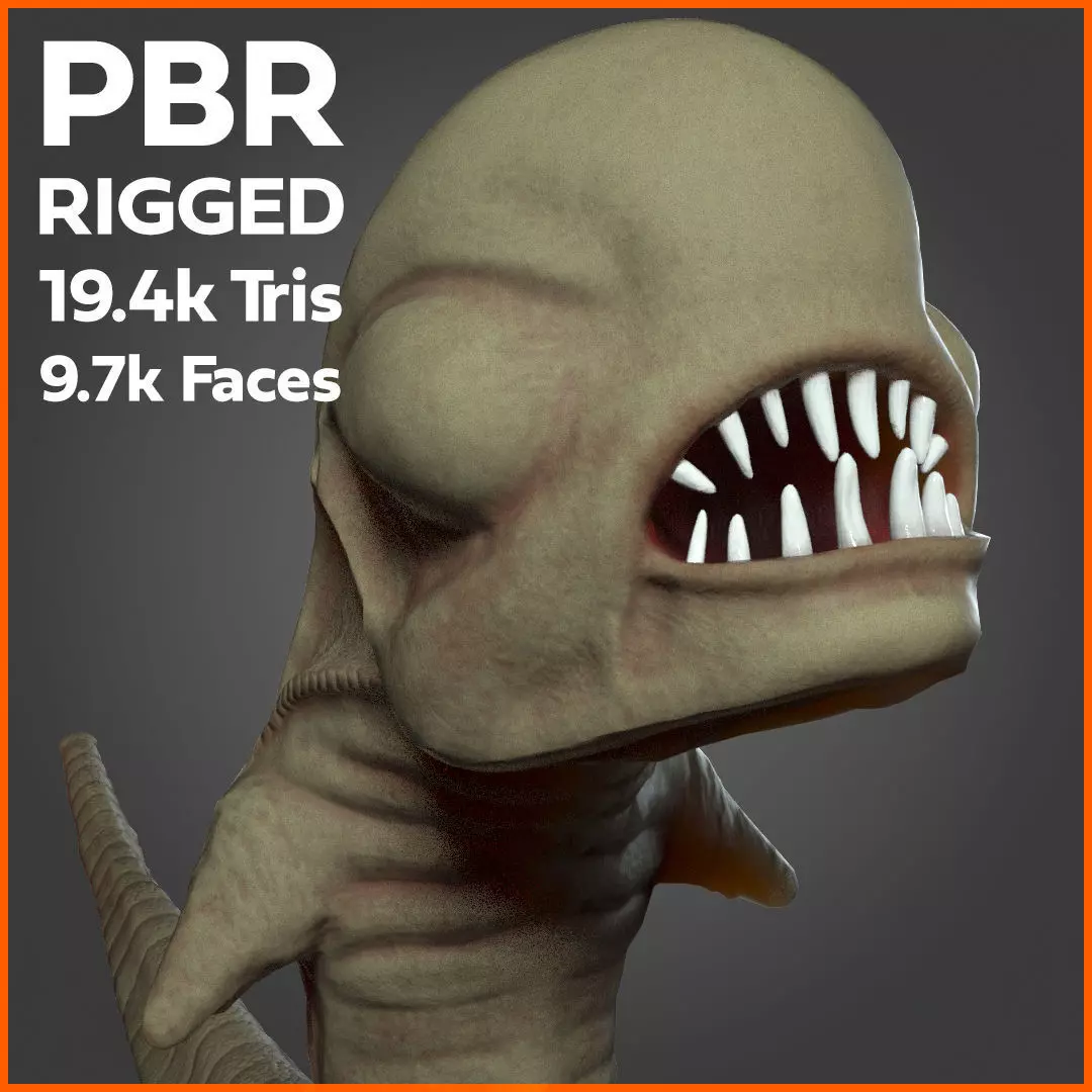 Alien Chestburster PBR Rigged 3D Model Low-poly 3D model