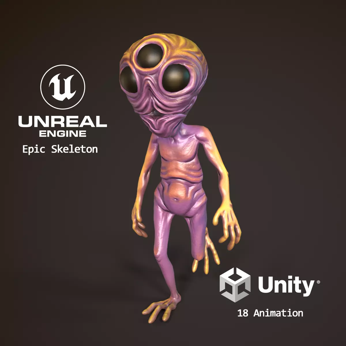 The model contains 18 animationsatack (x3)get hit (x2)walking (x3)straif LR (x2)idle (x3)death (x2)run (x3)