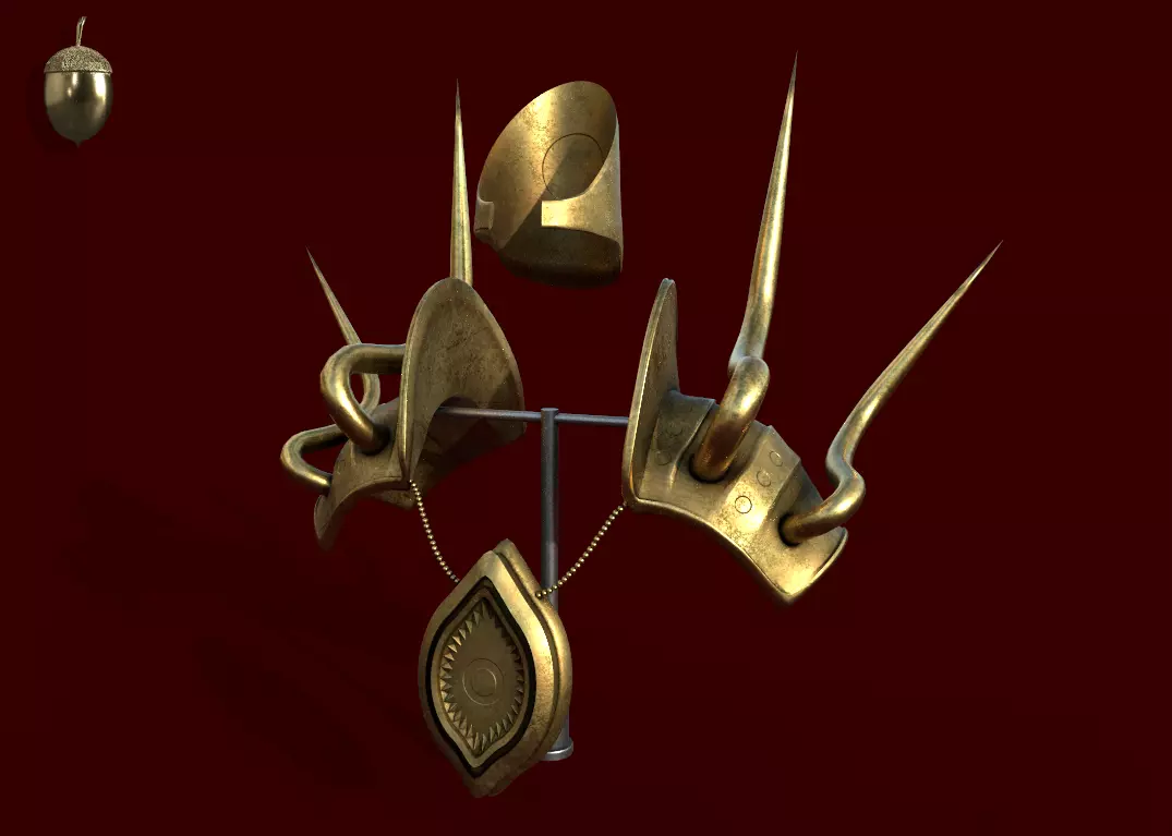 An ancient golden armor display, fantasy-themed and fully UV-mapped and PBR textured, 1024 pixels.