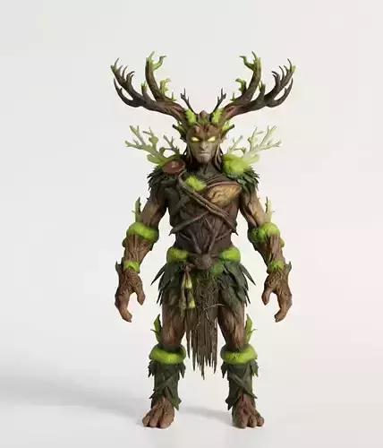 Description:Channel the primal energy of the woodlands with the Ancient Grove Sentinel. This character asset is designed for high-fidelity fantasy RPGs, mystical encounters, or as a stoic druidic NPC. The figure is a manifestation of the forest's will, constructed from intertwined roots, ancient bark, and living flora. Dominated by a sweeping set of timber antlers and a stern, bark-hewn visage, this guardian stands as an eternal protector of the wild. Its piercing green gaze hints at the potent earth magic flowing through its wooden veins, ready to animate the very trees around it to fight off encroaching darkness.