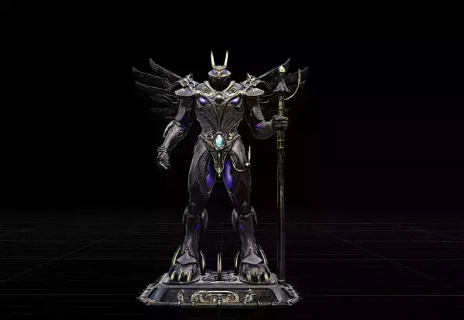 A masterpiece of Divine Cybernetics, this model features a stunning blend of high-tech machinery and baroque ornamentation. Clad in matte black armor with intricate gold filigree, this Celestial Archangel Mech is designed for use as a boss character, a centerpiece statue, or a high-end cinematic asset in epic sci-fi or fantasy projects.