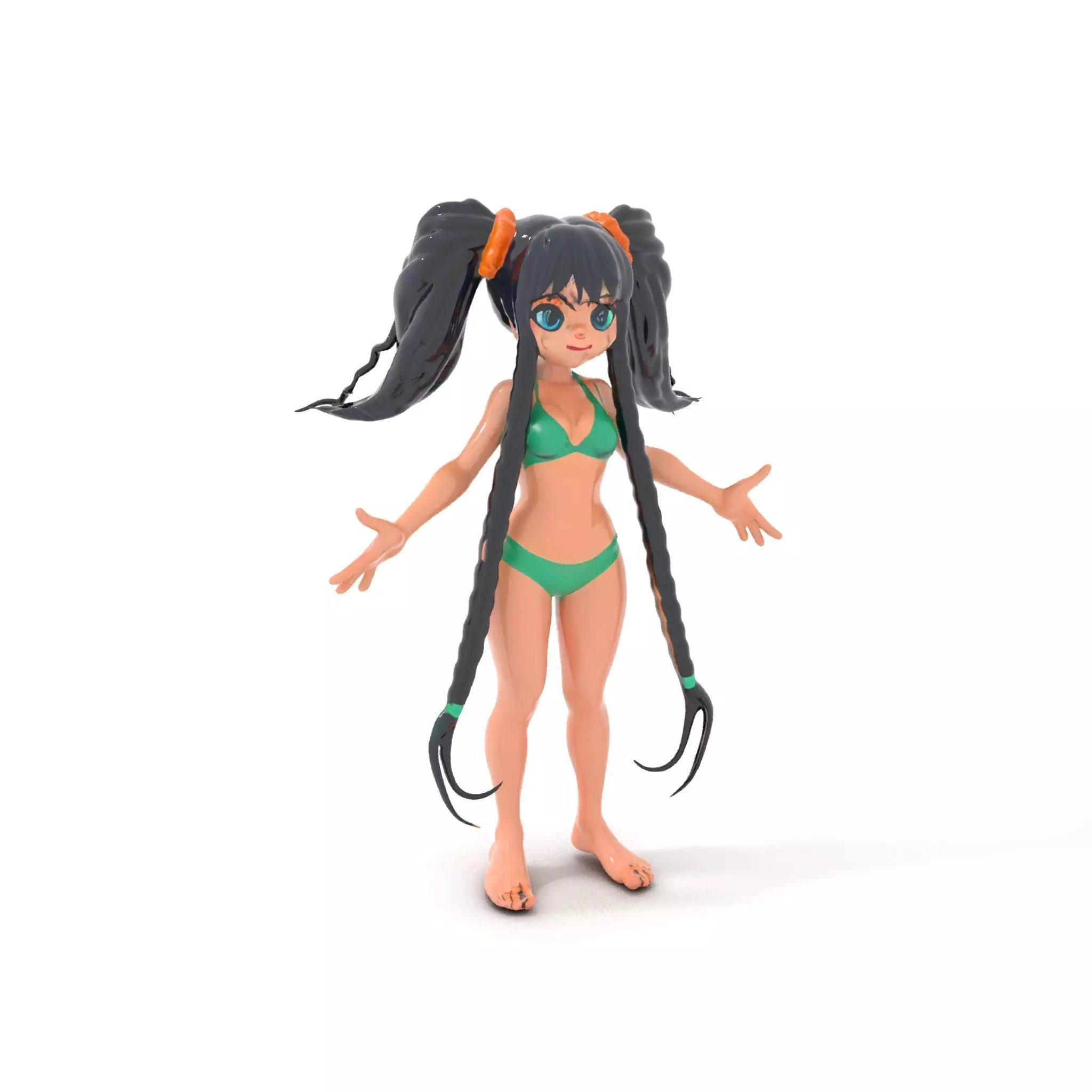 Animated Girl Character Model with Braids in Swimwear Rigged ... Low-poly 3D model