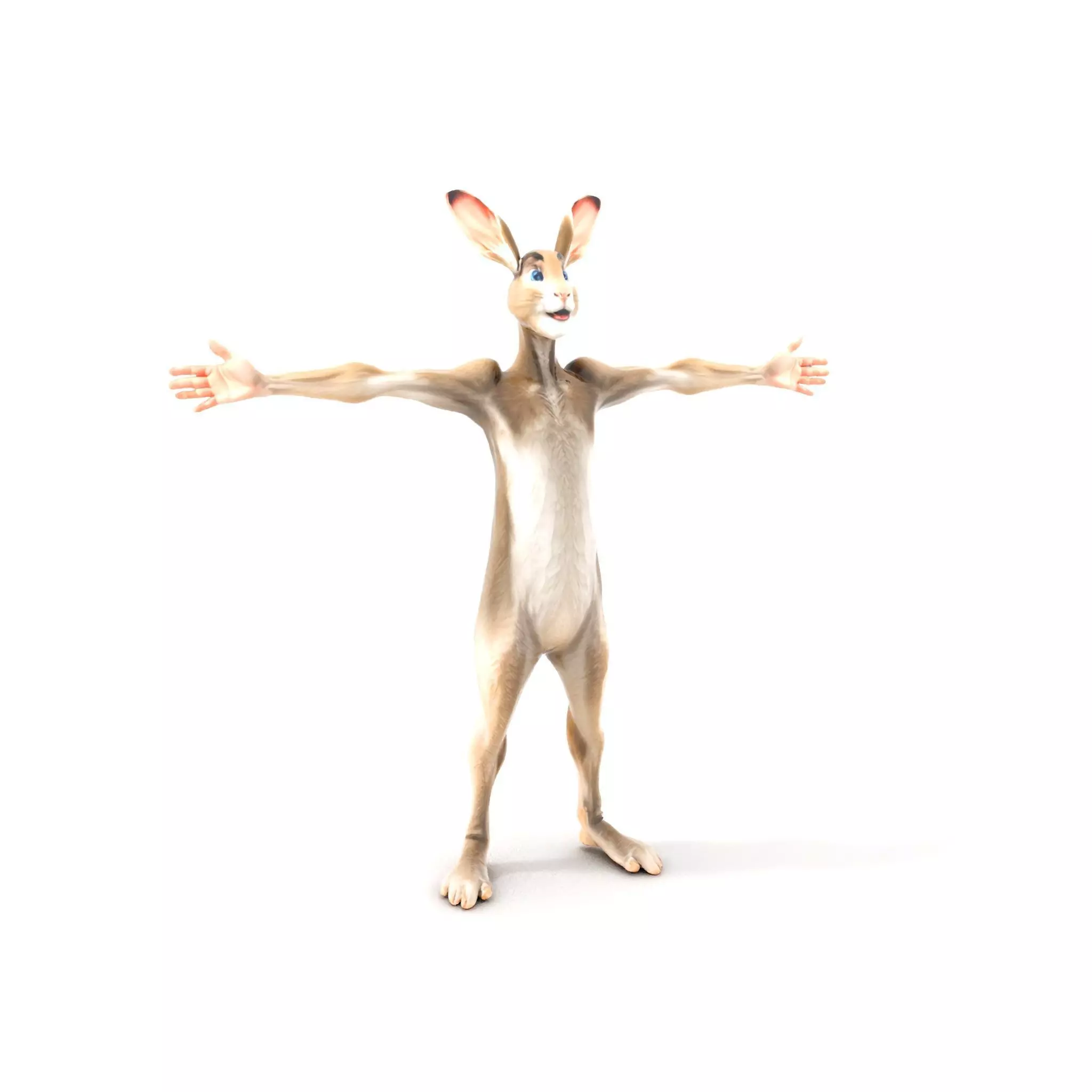 This is a highly detailed 3D model of an animated rabbit character, perfect for use in cartoons, animation films, or video games. Its expressive features and realistic fur make it ideal for adding life and personality to any 3D scene. Each model has 3 levels of detail: low-poly(1000 triangles for mobile), middle-poly(10 000 triangles for environment), and high-poly(100 000 triangles), which allows for the use of this model in production rendering (such as 3ds Max, Maya, Cinema4D, Blender, Vray/Corona/Cycles and all other), game engines (Unity and Unreal compatible), and interactive presentations, providing a choice of detail based on the LOD System principle. Perfect for animation projects, kids' games, or educational purposes. The model's textures are PBR, Diffuse, NormalMap, and reflection/roughness/metallic, which are suitable for any modern rendering engine. All models accurately unwrapped and have no overlapping UVs. All textures are 4096*4096 in size. If you enjoyed the model, please like and leave a comment!
