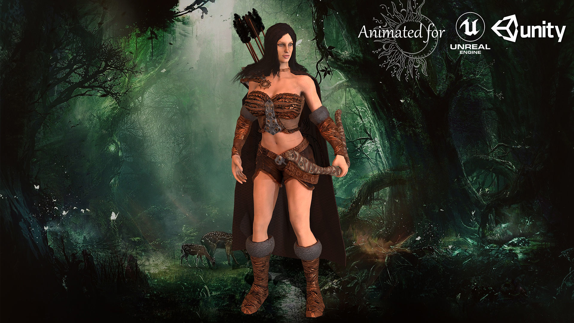 Beautiful low-poly Archer girl Actual size of the low poly 3d model animated rigged ready for games and other applications in real-time.