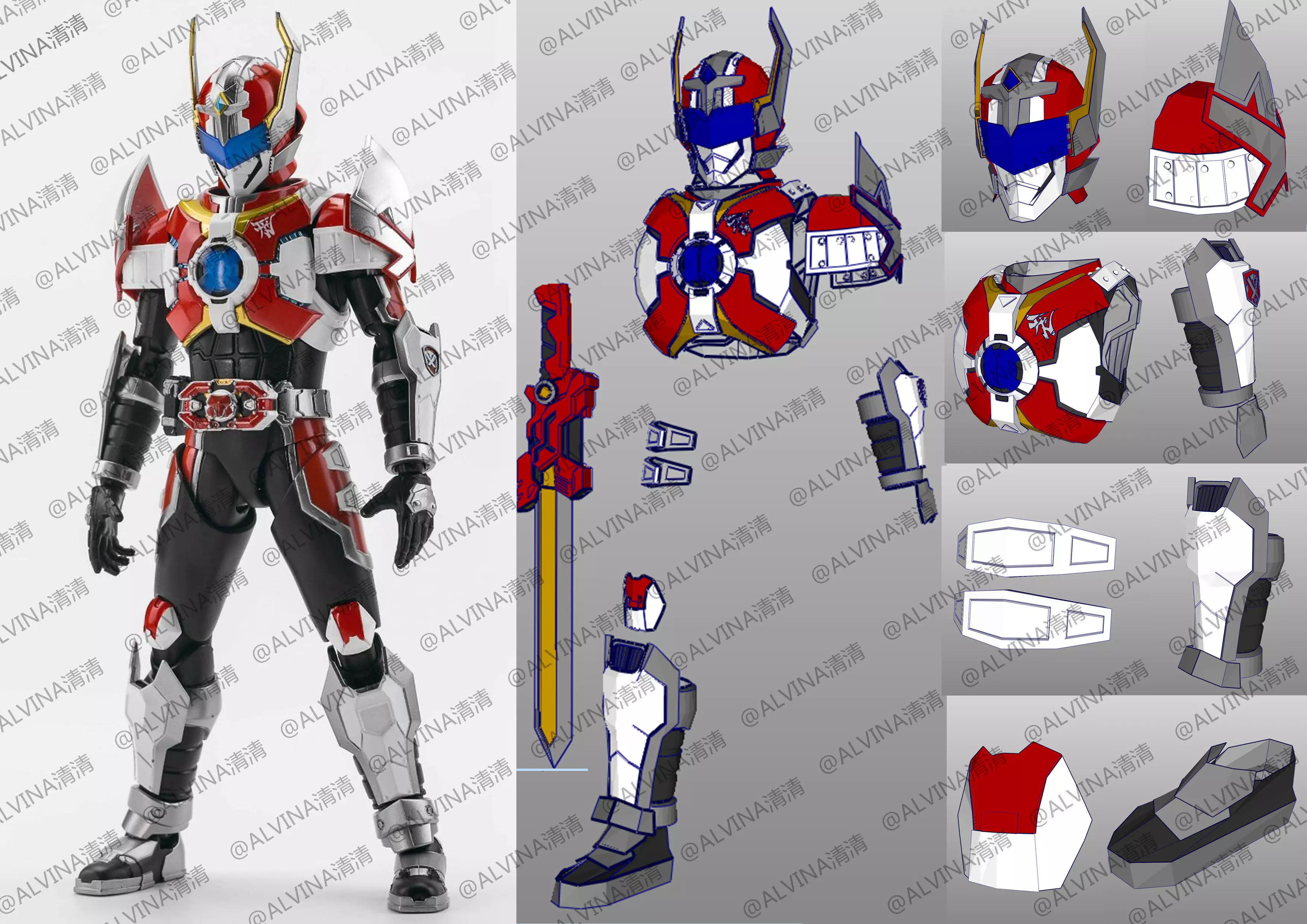 ---Production requirements -- I also adjusted this file for beginners, so what you need is foam, some ordinary printers for printing paper, and some super glue to help you track the pattern pins. If you have a 3D printer or experience with Pepakura, you can skip this section.