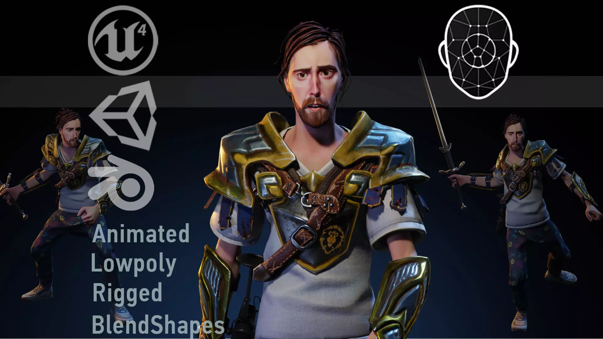 Purpose:Usage in game projectsVTuber avatarProfile for VR social networksGeometry:Vertices 39,913Triangles 68,030Optimized topology for performanceSupport for modern graphics APIsAnimation:ARKit, LipSync integration52 blendshapes for facial animationBasic skeletal animationItem interactionsSupport for core actions:Walking/runningSword attacksCooking interactionsPrimary Weaponry:Two-handed swordAttack and special move animationsTextures:6 materials29 textures 2048x2048