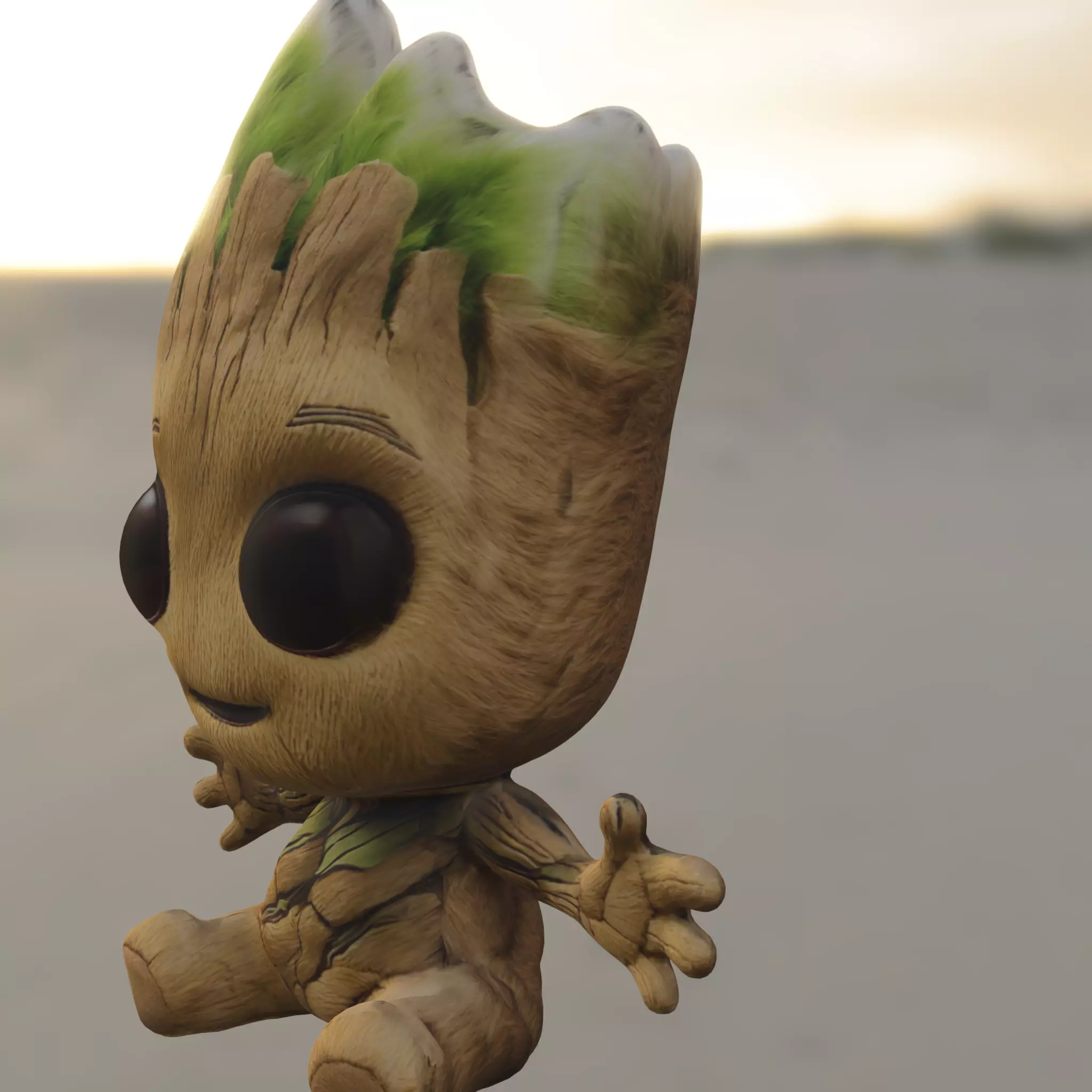 This stylized baby tree creature is a charming 3D character asset, ideal for fantasy, adventure, or casual-style games. With its large expressive eyes, wood-textured body, and playful pose, it's perfect as a companion character, forest spirit, or collectible pet in immersive game worlds.
