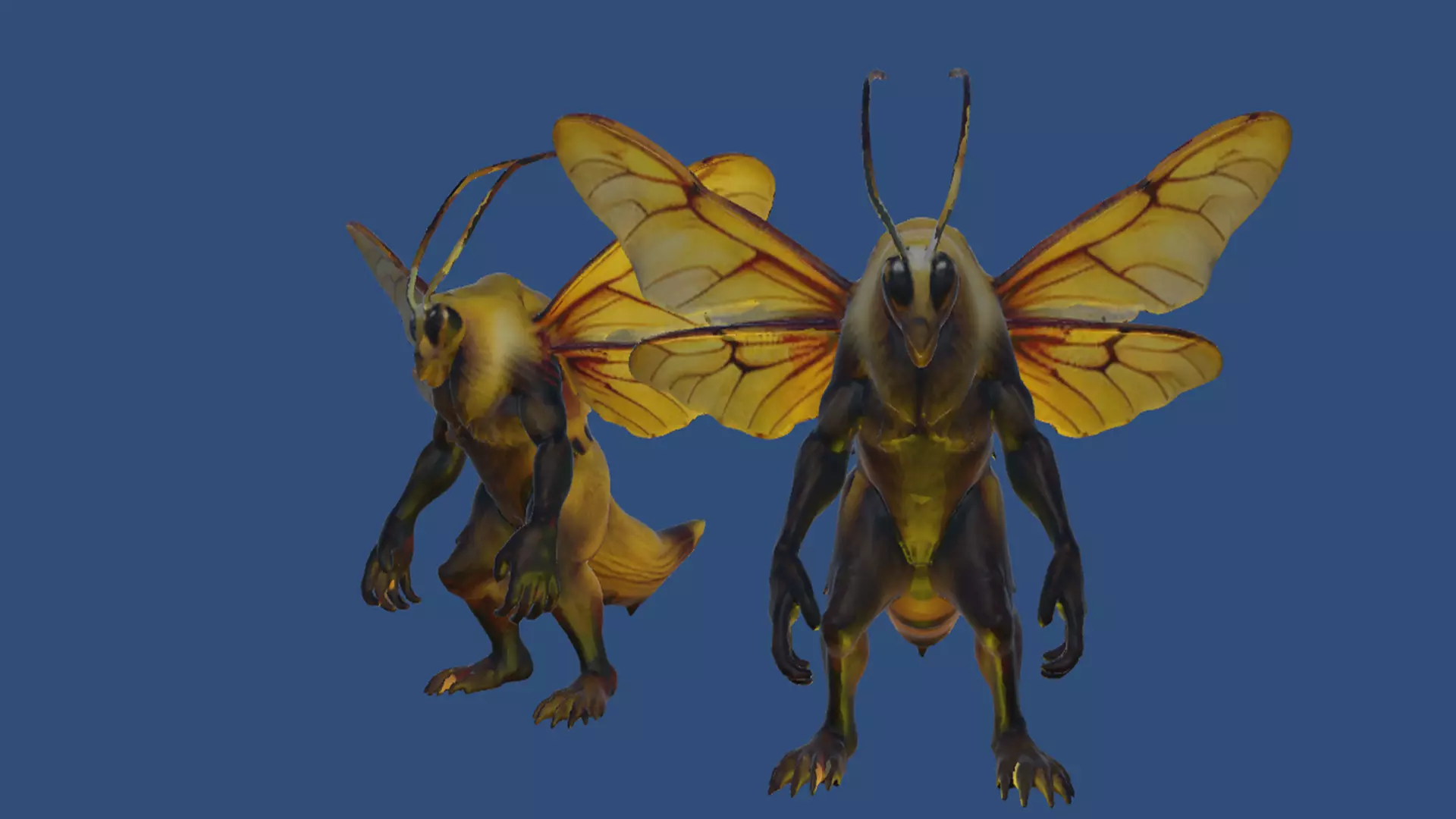 Mutant sentient bee/man defender of the hive. This create reports only to the Queen. Its minions are a quarter its size and more bee-like. They are good souls.They battle hornets and wasps also blended with sentient beings. They will come in 1,000,000 earth years.