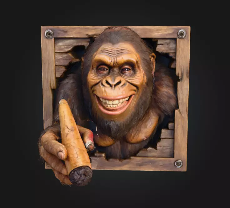 This asset offers remarkable creative versatility. In a fantasy or folklore setting, it can act as a magical guardian emerging to deliver a mystical item or summon an adventure. In humorous or whimsical projects, it becomes a playful wall sculpture or interactive decoration that surprises players and viewers. It could also serve as a collectible NFT art piece, theme-park prop visualization, or VR/AR installation where its dynamic, breaking-the-frame design creates an engaging 3D illusion. Its combination of rustic wood textures and lively creature anatomy makes it equally fitting for horror-comedy games, paranormal stories, or imaginative exhibitions.