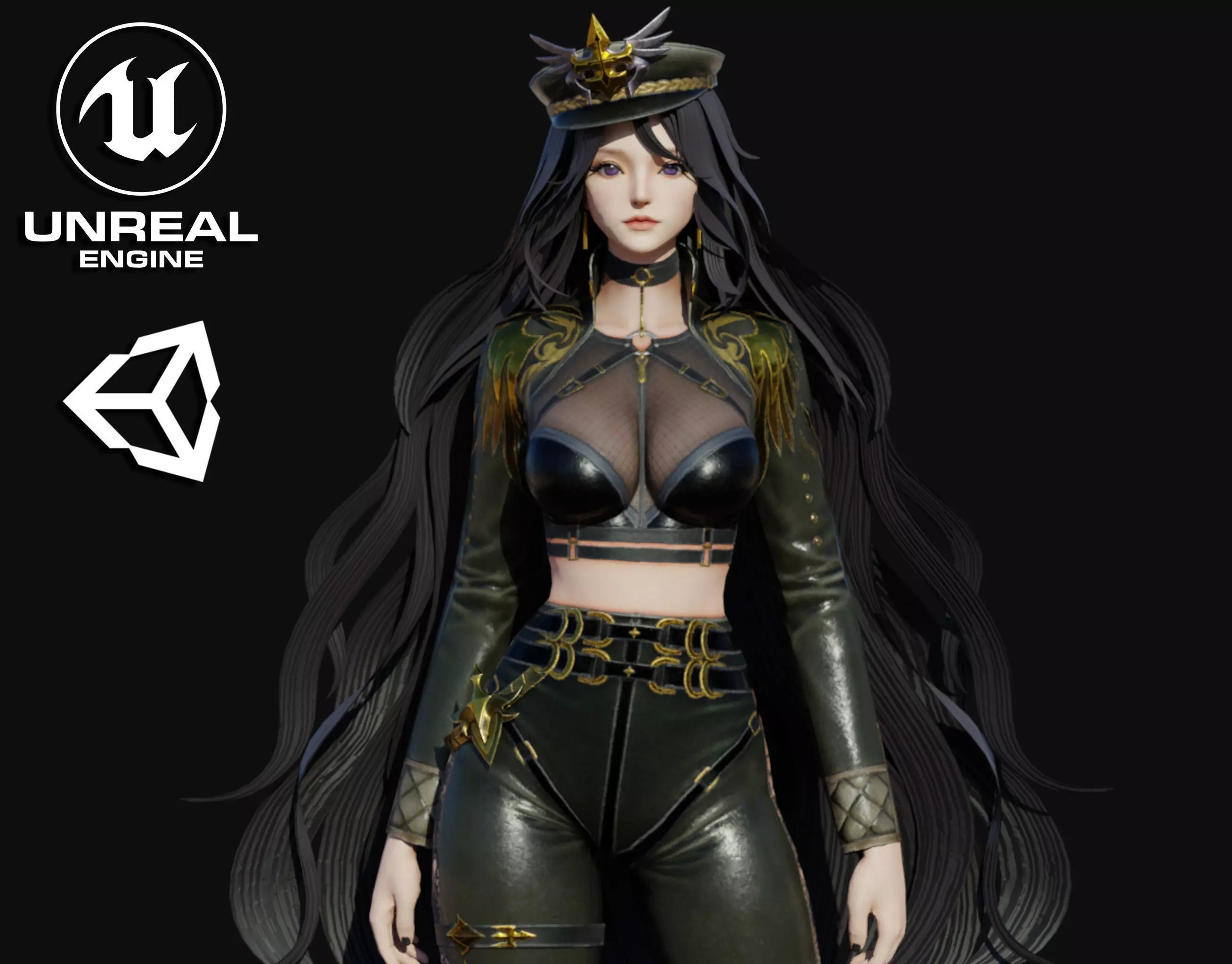Beautiful low-poly character in 3d model rigged ready for applications in real-time.Sculpting models ZBrush and rigging in 3ds Max.