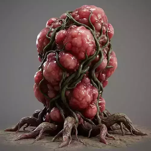 Blight Growth is a disturbing and highly detailed organic 3D asset designed to embody corruption, decay, and unnatural evolution. This model represents a malignant growth born from cursed soil, toxic magic, alien infestation, or biological catastrophe. Its swollen, bulbous surface forms are layered with fleshy masses that pulse visually with sickness and instability, while vine-like tendrils and root structures bind the growth together, anchoring it to the ground like a parasitic organism feeding on the land itself.