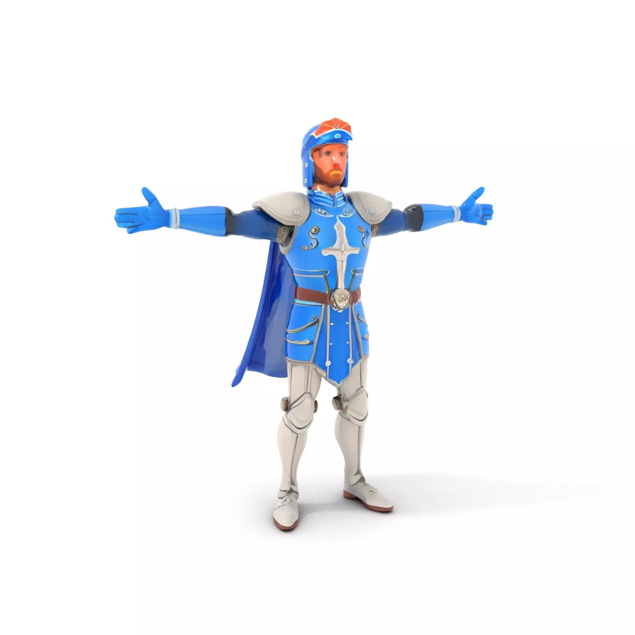 This impressive Blue Armored Knight model pack features intricately designed armor with blue and metallic silver hues. It embodies a classic medieval knight aesthetic, perfect for historical recreations or fantasy game settings. Each model has 3 levels of detail: low-poly (1000 triangles for mobile), middle-poly (10,000 triangles for environment), and high-poly (100,000 triangles), which allows for the use of this model in production rendering (such as 3ds Max, Maya, Cinema4D, Blender, Vray/Corona/Cycles and all others), game engines (Unity and Unreal compatible), and interactive presentations, providing a choice of detail based on the LOD System principle. This versatile model is ideal for video games, animations, and educational purposes. The model's textures are PBR, Diffuse, NormalMap, and reflection/roughness/metallic, which are suitable for any modern rendering engine. All models are accurately unwrapped and have no overlapping UVs. Please like and leave a comment for the model if you enjoyed it. All textures are 4096*4096 in size.