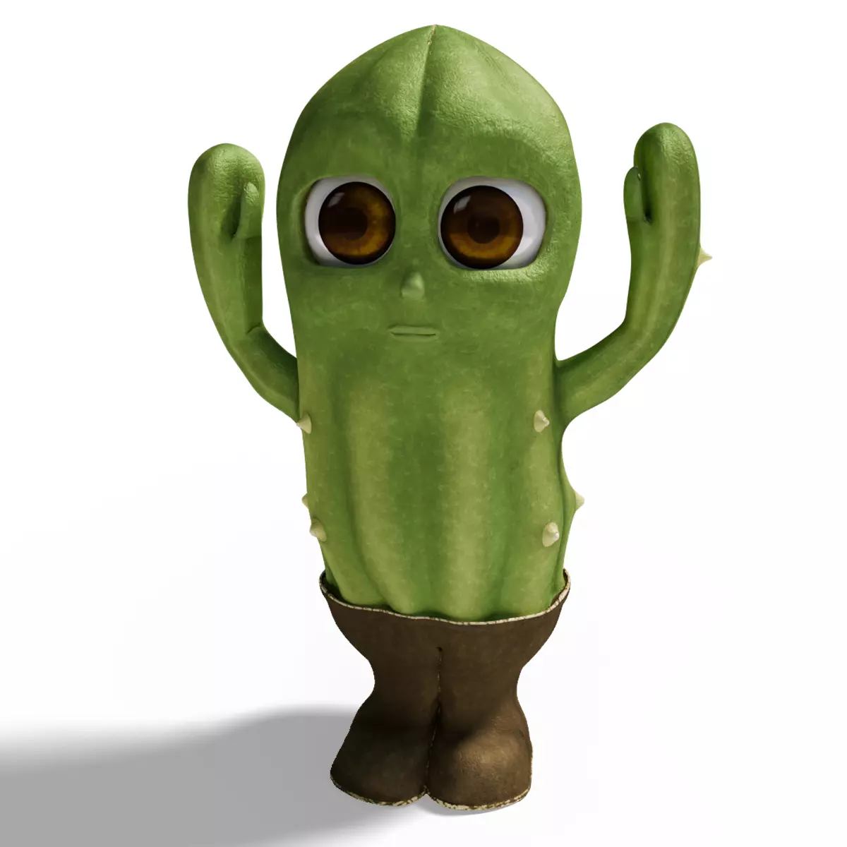Low-poly, toon-style cactus character 3D model. Fully rigged and ready for animation, perfect for games, animations