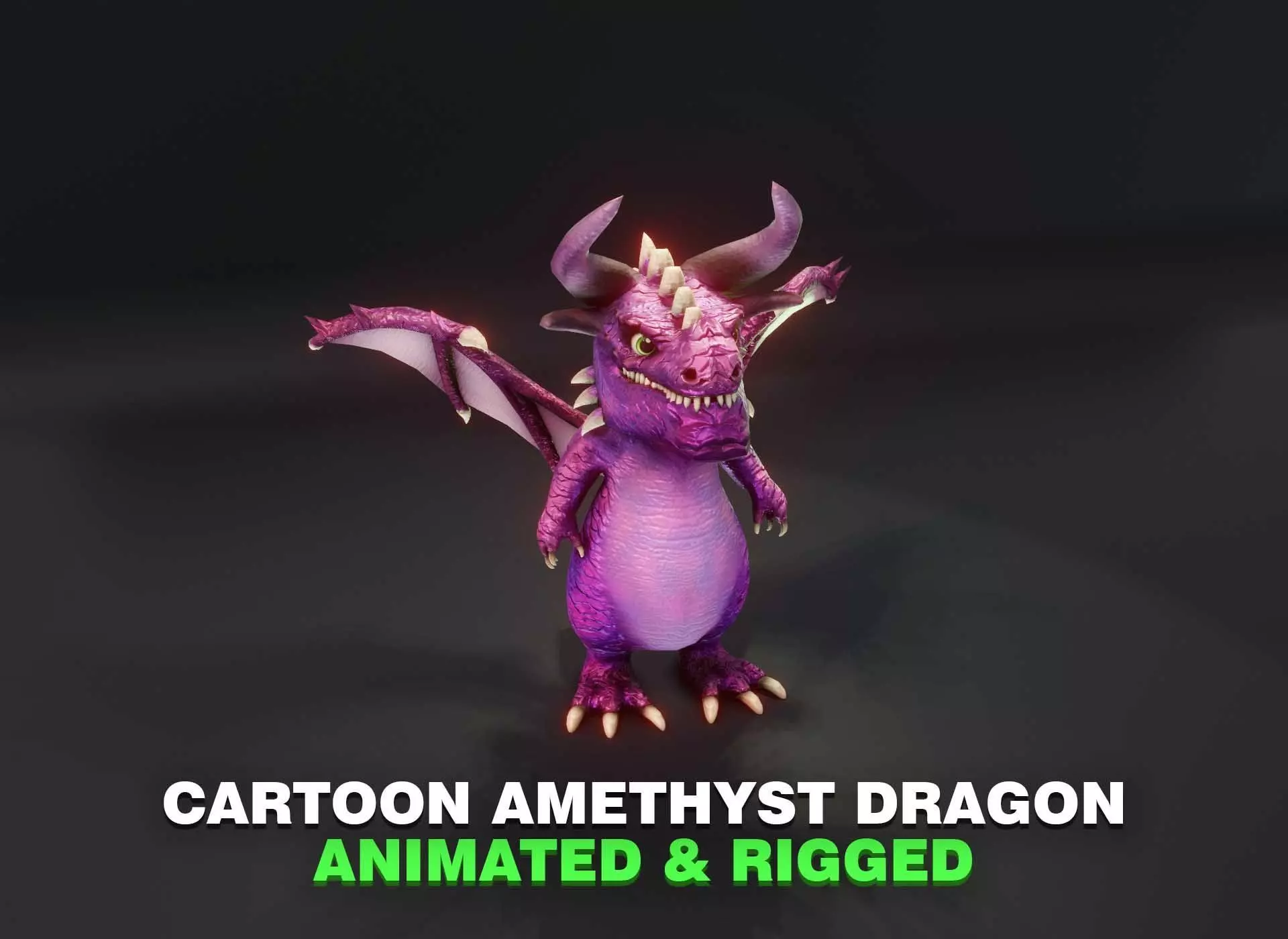 Cartoon Amethyst Dragon Animated 3D Model Low-poly 3D model