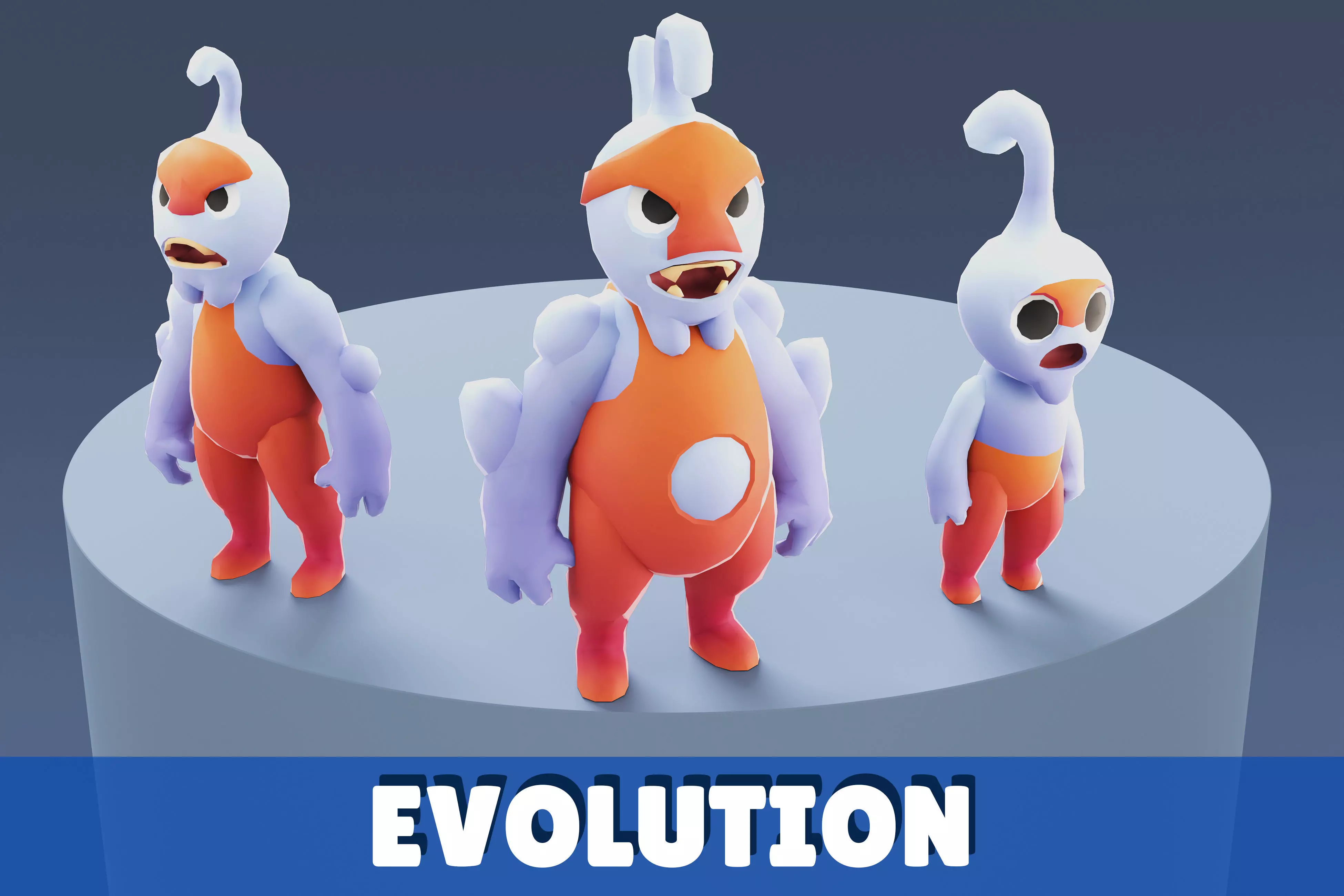 The model is made as an enemy for your main character. Each stage of evolution makes him stronger and stronger, so you can use it to progress your opponents and as enemy boss. It’s suitable for different genres of games, such as runners, tower defense, RPG and many others.