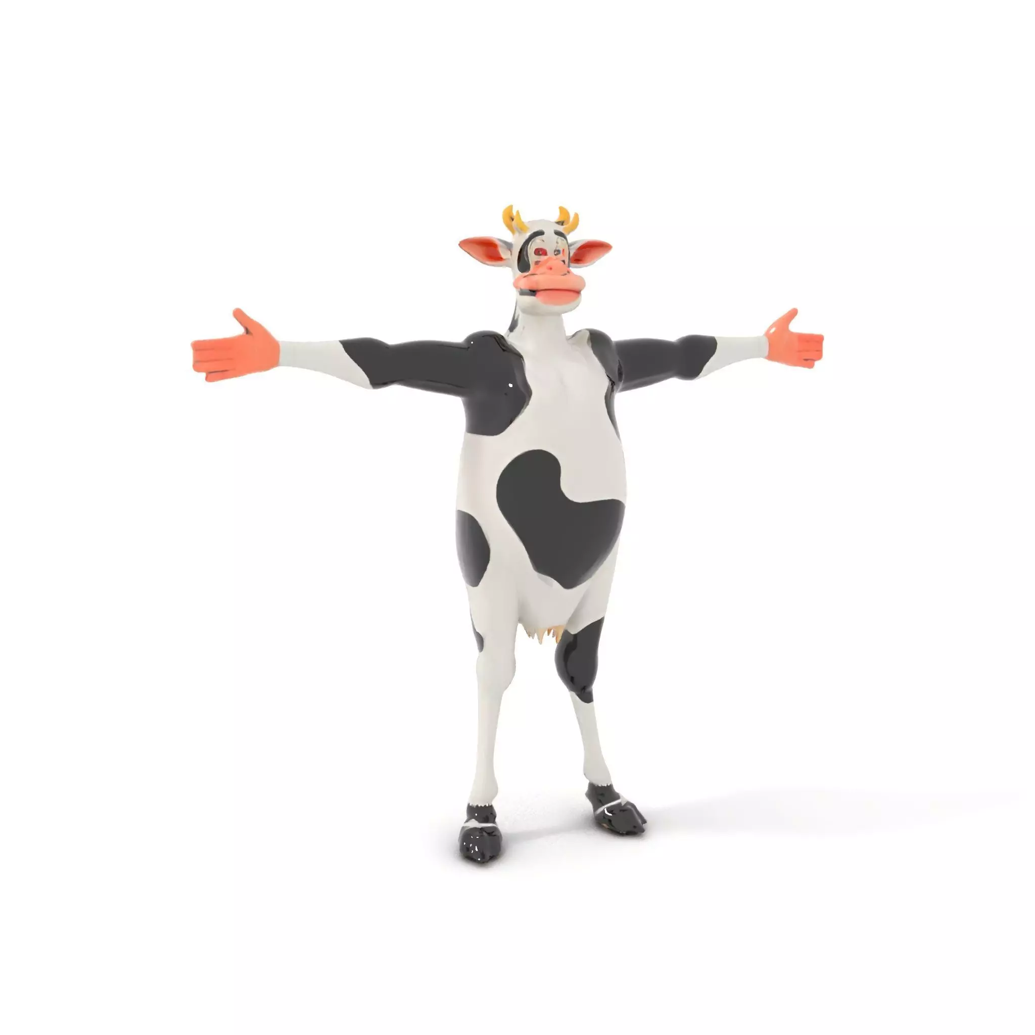 This Cartoon Cow Character model pack offers a playful and stylized 3D representation of a cow character, designed with exaggerated features and vibrant black and white colors. Ideal for animation, games, and interactive experiences, this model provides a fun and whimsical addition to any project.