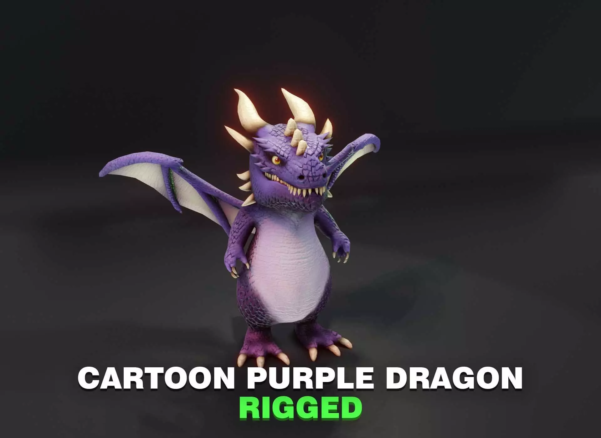 Cartoon Purple Dragon Rigged 3D Model is rigged and is completely ready to be used in your games, animations, films, designs etc
