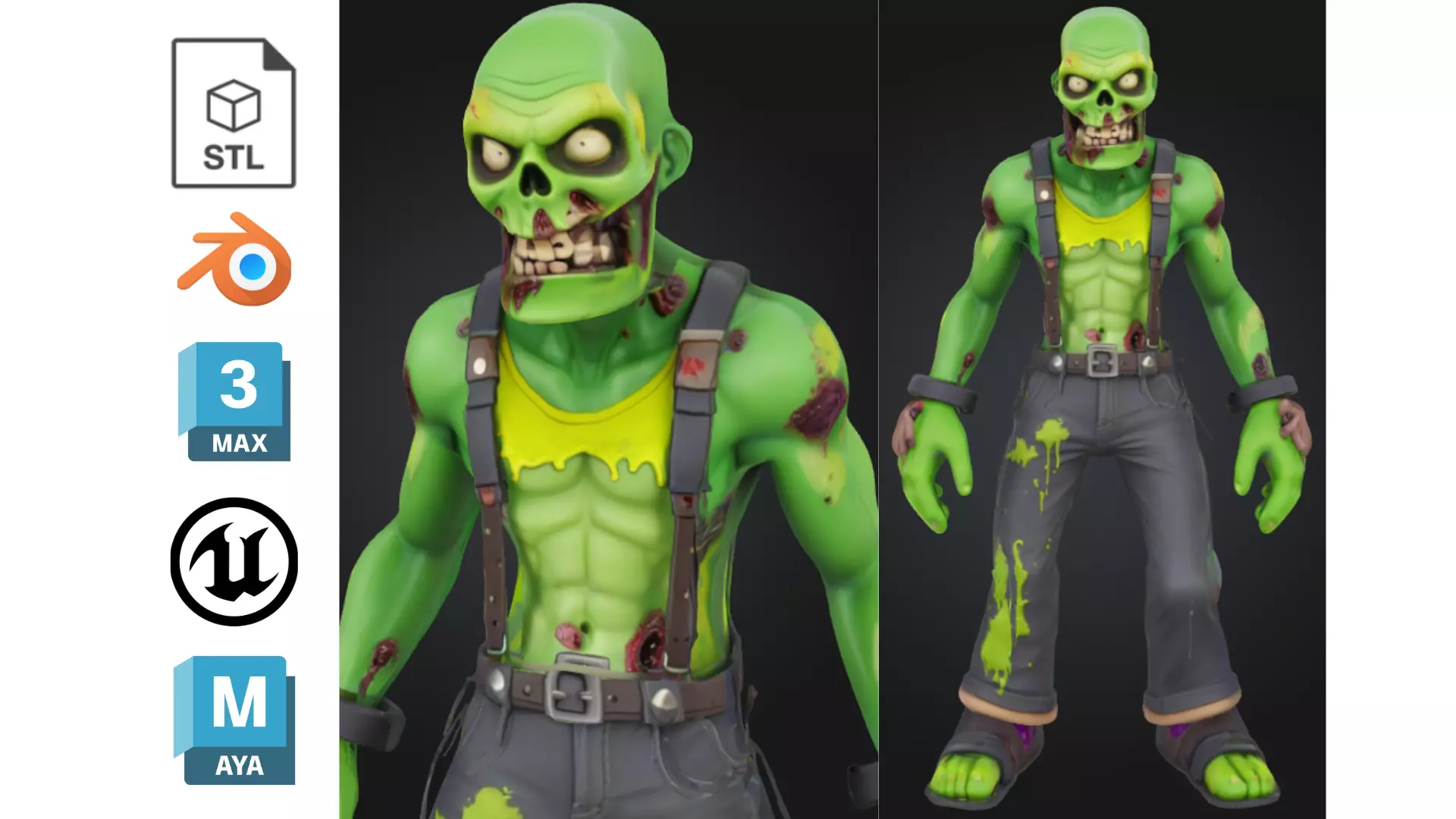 The Cartoon Toxic Zombie is a stylized undead character with a vibrant green tone, cartoonish proportions, and toxic damage effects. Designed for game developers, animators, and collectors, this model stands out with its exaggerated features and radioactive-style details.