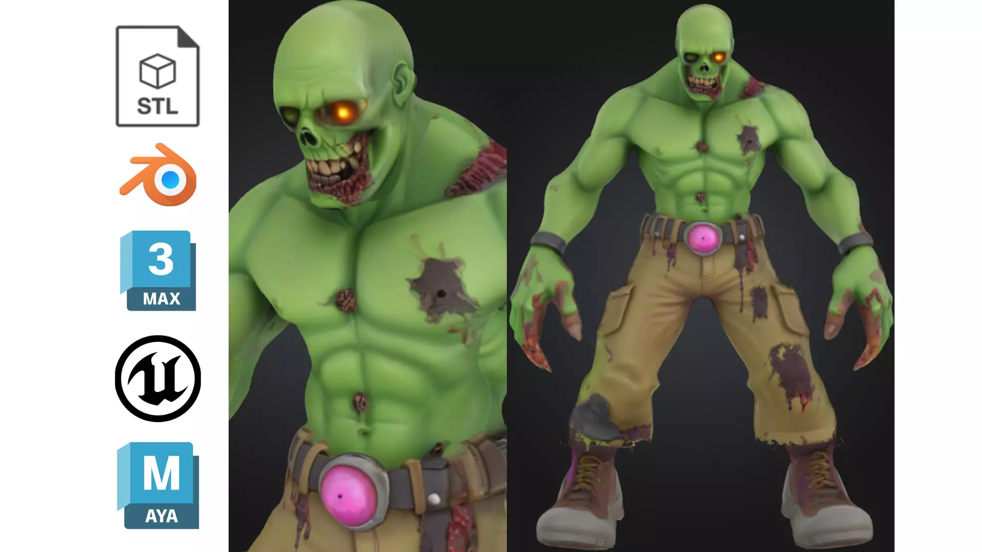 This Cartoon Zombie Mutant is a highly stylized 3D character featuring a muscular undead design with glowing eyes, grotesque wounds, and worn combat pants. Ideal for video games, animations, or collectibles, the character blends cartoon charm with horror elements.