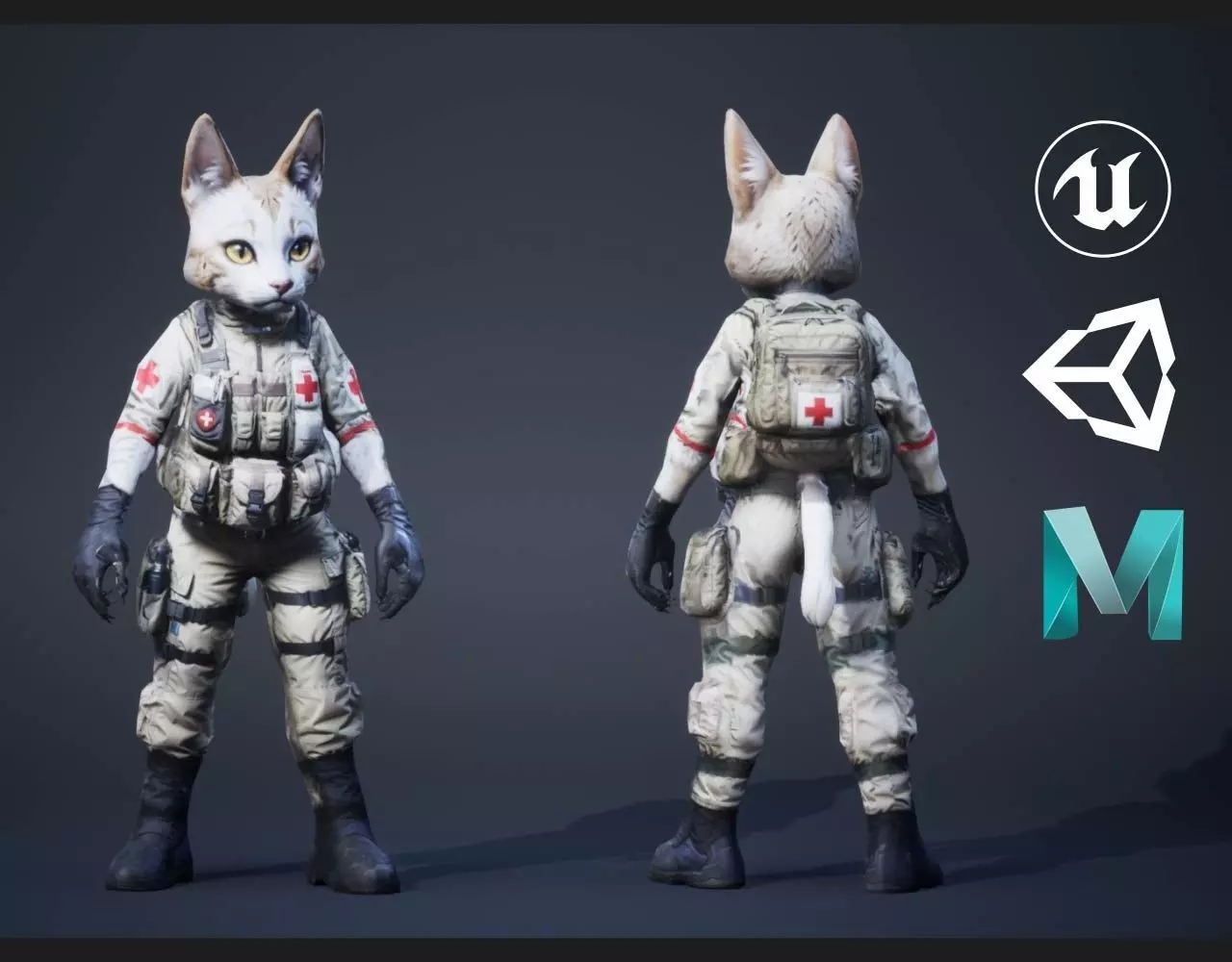 Low-Poly Rigged PBR Character – Cat Soldier 5