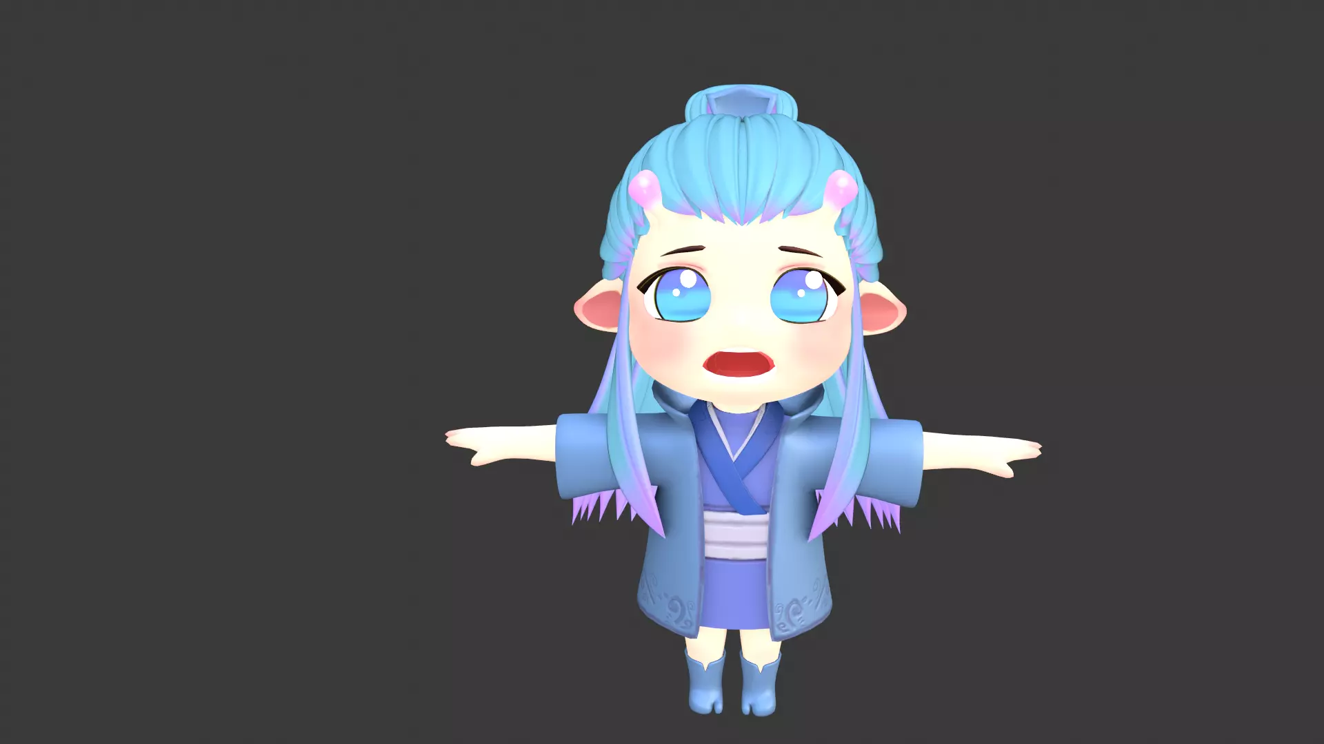 Chibi anime girl with hair Low-poly 3D model