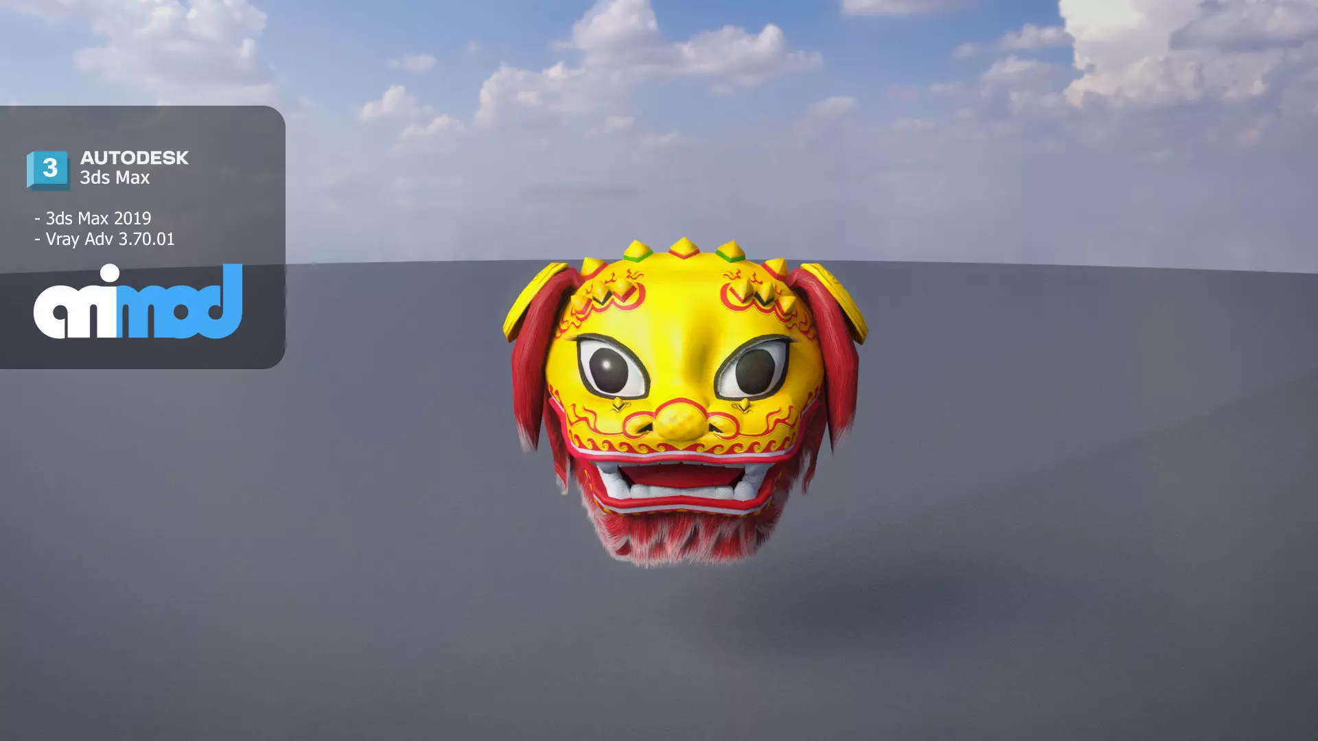 Chinese Lion Dance Head Mask 3D model