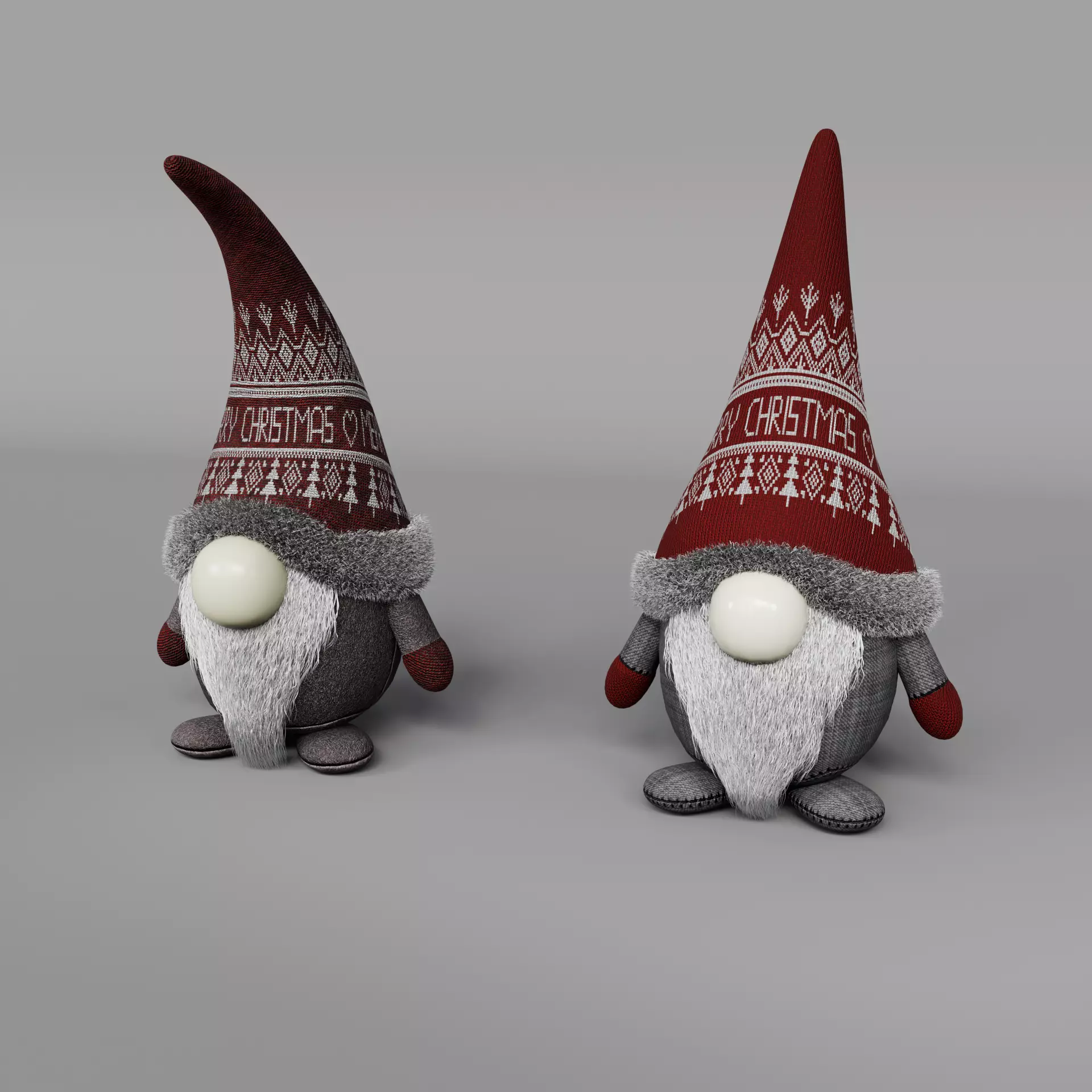 The gnomes feature adorable red hats with a winter pattern (Merry Christmas, trees, snowflakes), fluffy fur trims, and realistic, dense beards. The minimalist spherical faces give them a modern and charming look.High-Quality 4K Textures