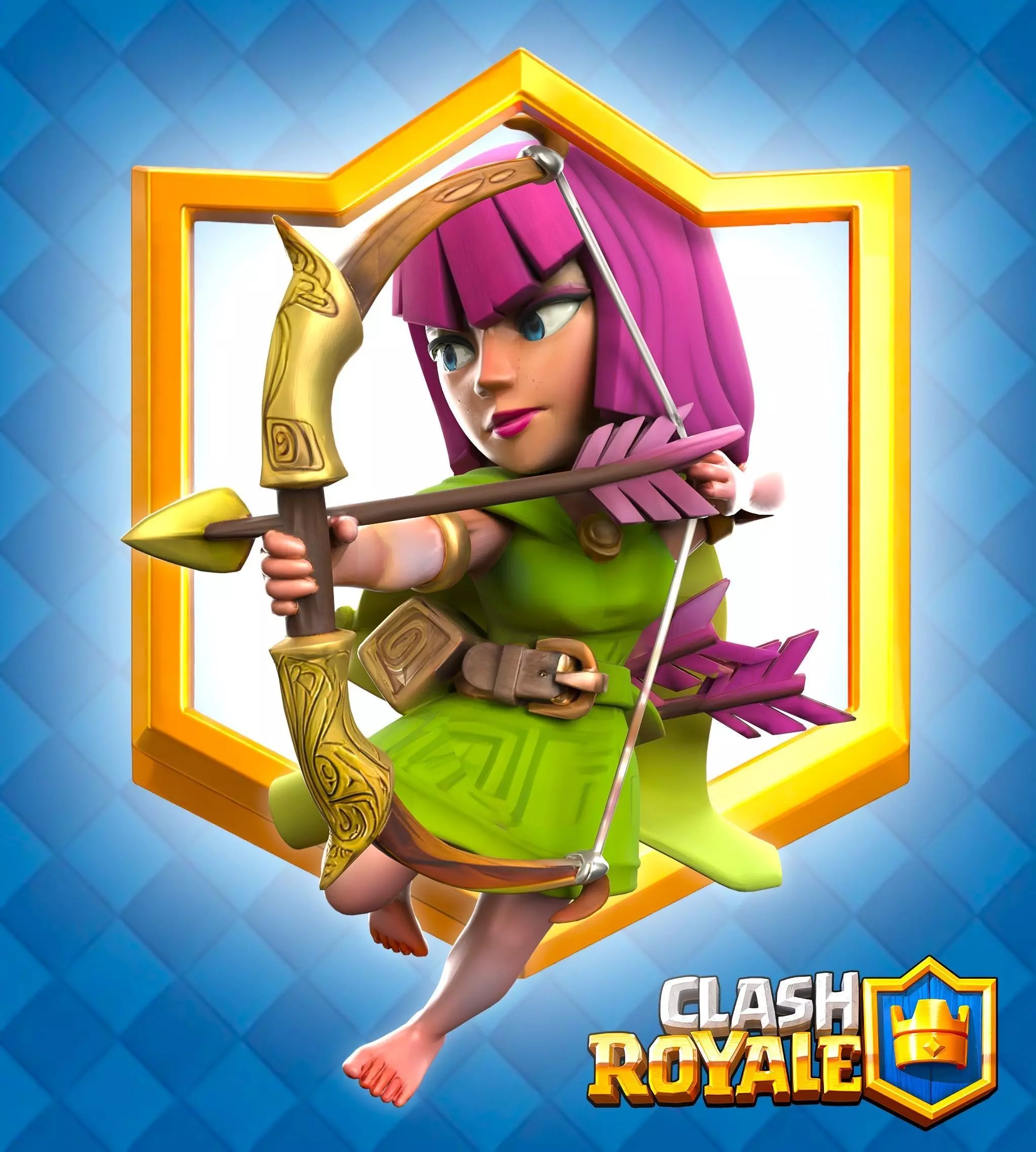 The Archers is a Common card that is unlocked in the Training Camp. It spawns two single-target, air-targeting, medium-ranged, and ground troops with low hitpoints and low damage, deployed in a horizontal line. An Archers card costs 3 Elixir to deploy.