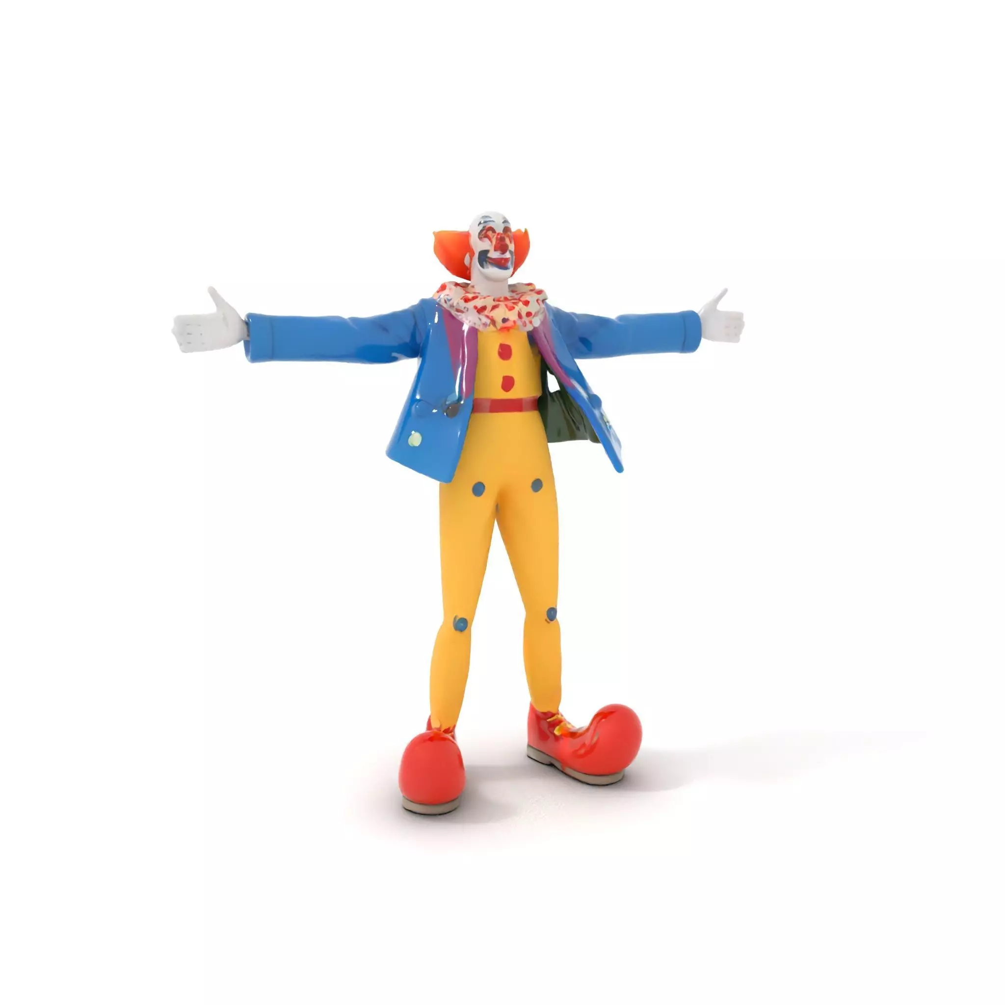 This 3D model pack features a vibrant and playful clown character, ideal for animations, games, and VR experiences. Each model has 3 levels of detail: low-poly(1000 triangles for mobile), middle-poly(10,000 triangles for environment), and high-poly(100,000 triangles), which allows for the use of this model in production rendering (such as 3ds Max, Maya, Cinema 4D, Blender, Vray/Corona/Cycles, and all others), game engines (Unity and Unreal compatible), and interactive presentations, providing a choice of detail based on the LOD System principle. This model is perfect for creating lively circus scenes or festive environments. The model's textures are PBR, Diffuse, Normal Map, and reflection/roughness/metallic, which are suitable for any modern rendering engine. All models accurately unwrapped and have no overlapping UV. All textures are 4096*4096 in size. If you enjoyed this model, please like and leave a comment. Your feedback is appreciated!
